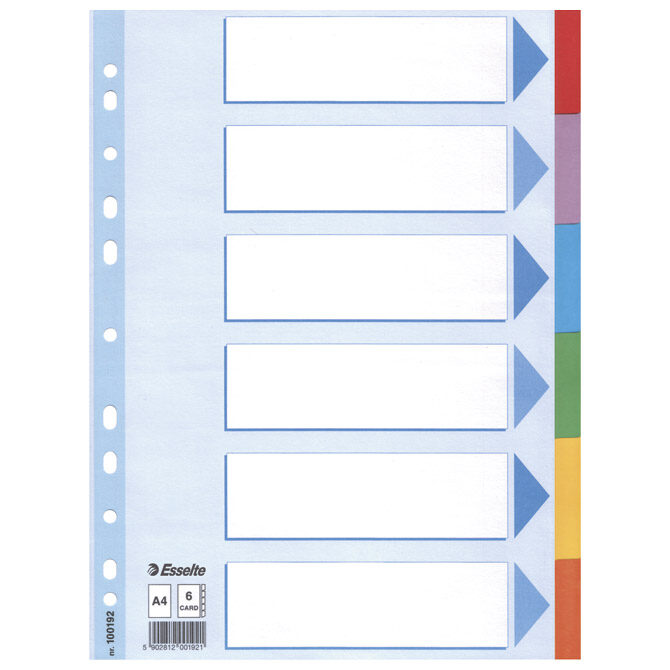 Pregrada kartonska A4 kolor 6listova Esselte 100192