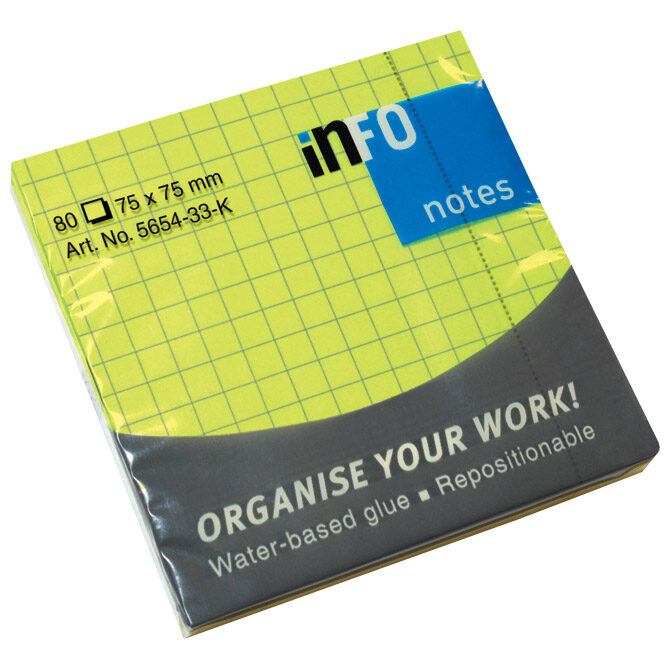Blok samoljepljiv 75×75 mm karo 80L Global Notes 5654-33-K neon-zeleni