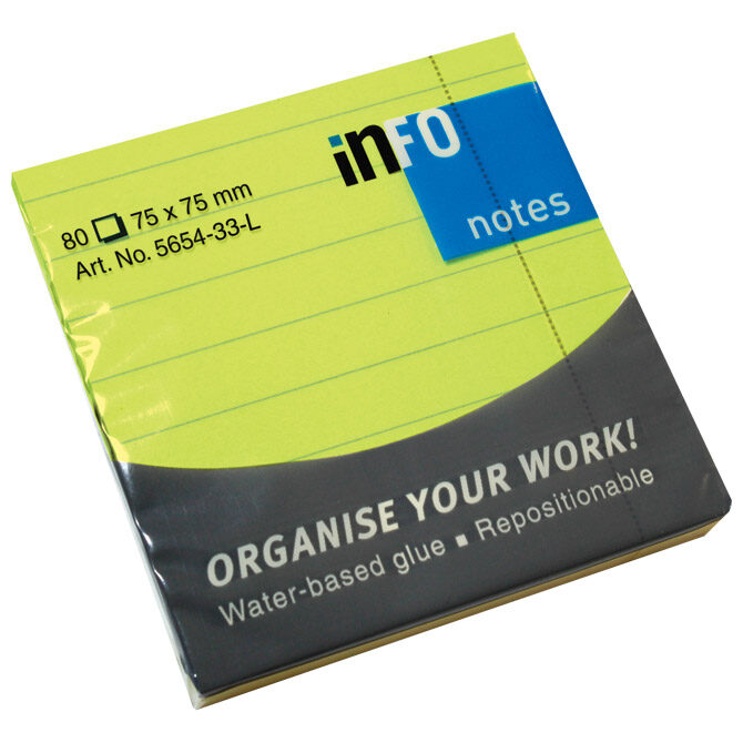 Blok samoljepljiv 75×75 mm crte 80L Global Notes 5654-33-L neon-zeleni