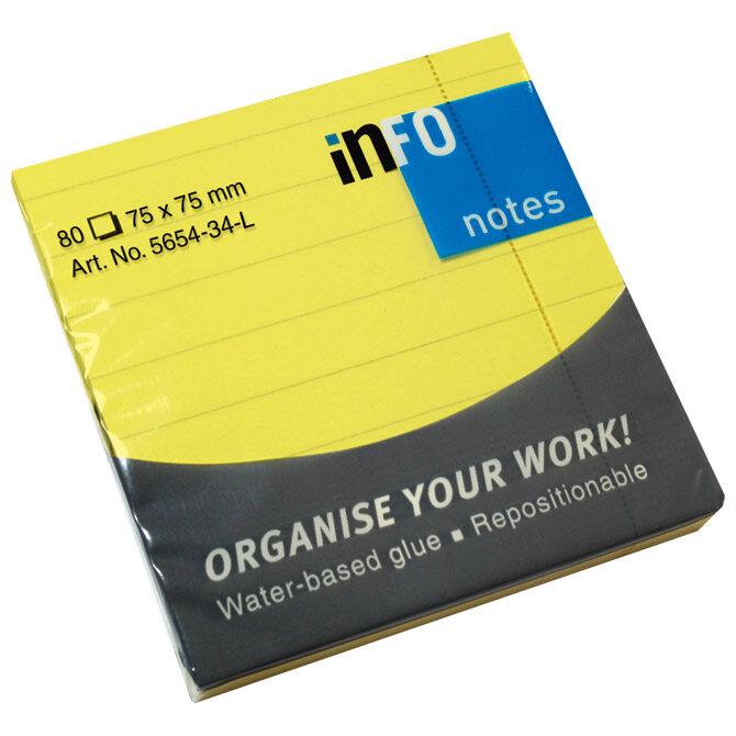 Blok samoljepljiv 75×75 mm crte 80L Global Notes 5654-34-L neon-žuti