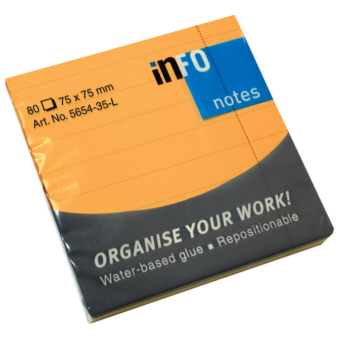 Blok samoljepljiv 75×75 mm crte 80L Global Notes 5654-35-L neon-narančasti