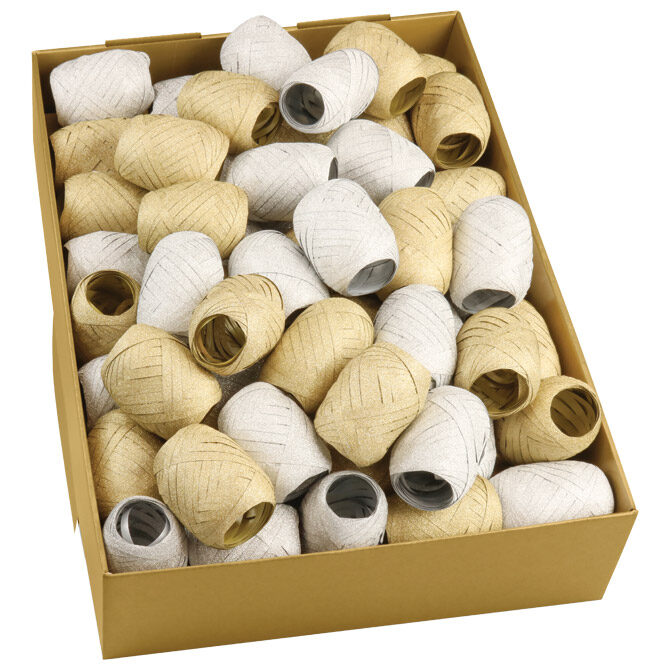 Mašna ukrasna samoljepljiva 45 mm Poly Glitter pk4 Prasent 1593-099 sort zlatna/srebrna!!