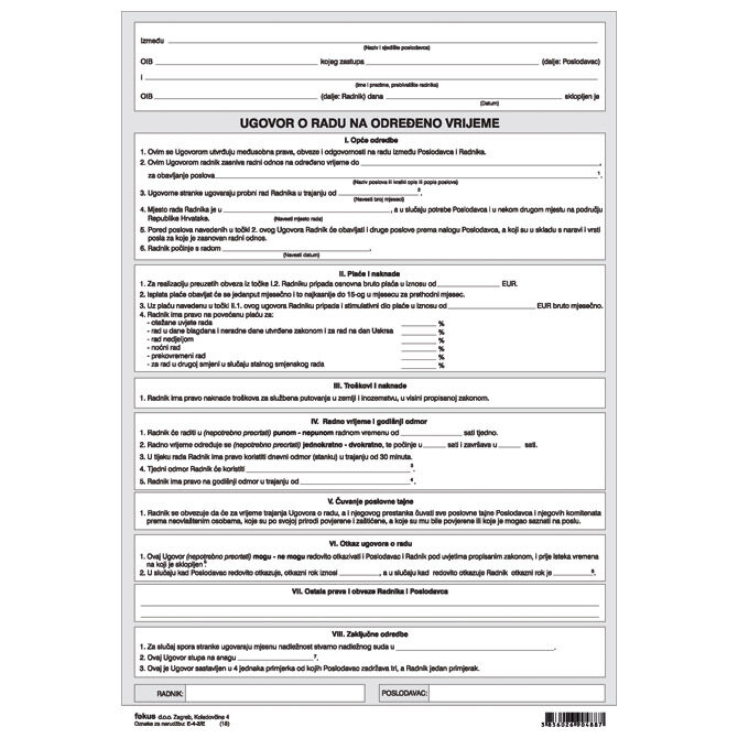 Obrazac E-4-2/E ugovor o radu na određeno vrijeme Fokus