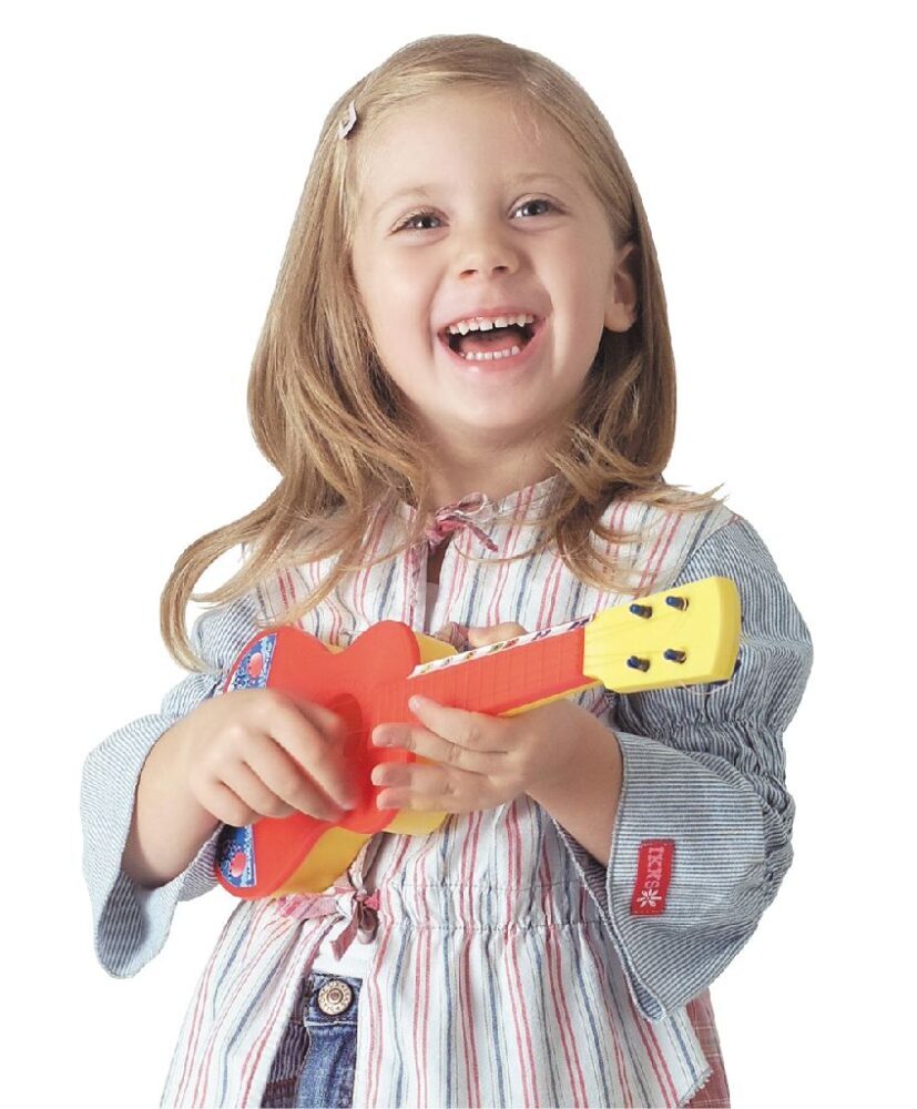 Za prvo iskustvo sviranja gitare Vašeg djeteta, ovdje je plastična dječja gitara sa četiri žice. Upoznajte svoje dijete s predivnim glazbenim svijetom te svojem glazbeniku pružite pravu glazbenu zabavu.