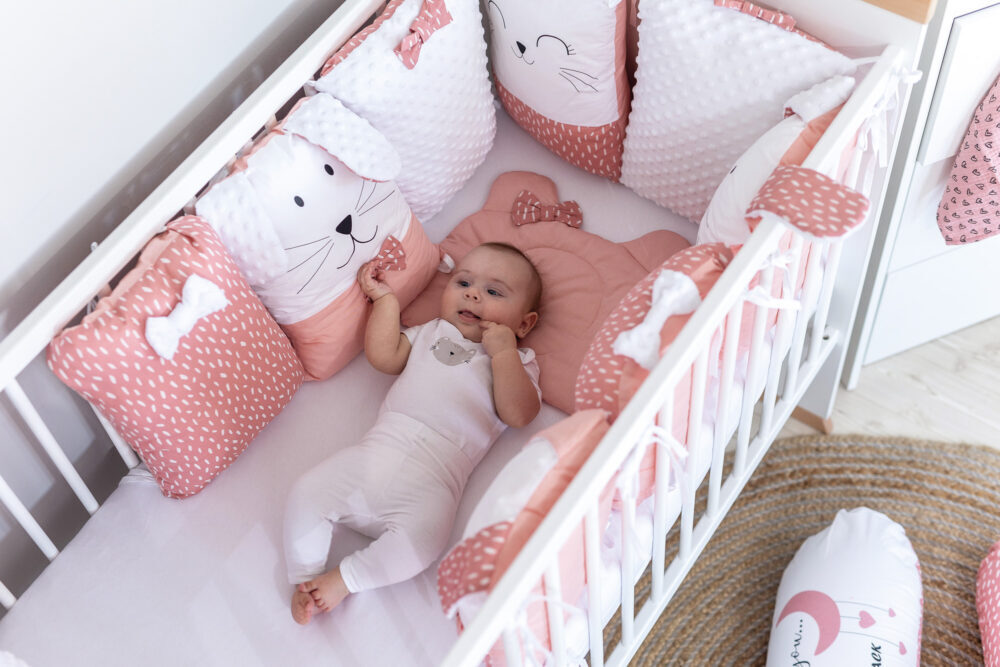 Bubaba posteljina pretvorit će krevetić u bajkovitu zemlju snova. Prekrasne kombinacije boja, maštovit i moderan dizajn nezamjenjivi su detalji svake sobe, izrađeni s puno ljubavi i predanosti dobroj kvaliteti. Za najudobnije snove vaših mališana! Posteljina je izrađena od mekanog, visokokvalitetnog materijala koji je nježan na dodir. Udobnost je dobila novu dimenziju. Lagana, prozračna i meka posteljina koja će nježno zagrliti bebino tijelo i održavati ga toplim. Jastuci koji čine ogradicu mogu se kasnije upotrebljavati u dječjoj sobi kao ukras. Komplet sadrži: jastuk 35 x 31 x 0,5 cm, ogradicu od 8 dijelova ukupne dužine 240 cm, pokrivač: 115 x 85 cm, navlaku za pokrivač sa zatvaračem: 90 x 120 cm, plahtu s lastikom primjerenu za madrace 120 x 60 cm i 140 x 70 x 10 cm.