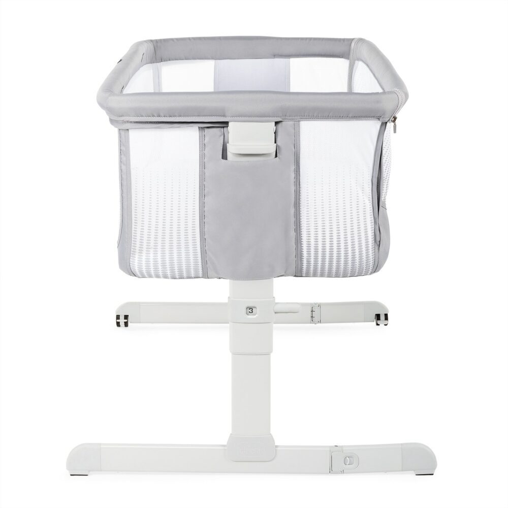 - lako i brzo otkopčavanje i pričvršćivanje bočnog dijela patentnim zatvaračem, jednostavan i siguran sustav pričvršćivanja: 2 trake omogućuju pričvršćivanje dječjeg krevetića na roditeljski krevet, zbog preklopnih nogu i podešavanja visine na 6 nivoa (35-52 cm) prikladan je i za većinu kreveta, uključujući one s ladicama,