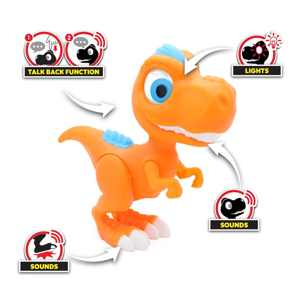 Igrom se vrati u prapovijesno doba kada su Zemljom vladali dinosauri! Uz Talk Back T-Rexa koji govori, zabava je zajamčena. Igračka proizvodi zvukove te svijetli, a možeš čuti i što ti ima za reći. Baterije: 2x AAA. Dob: 3+