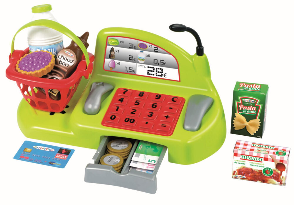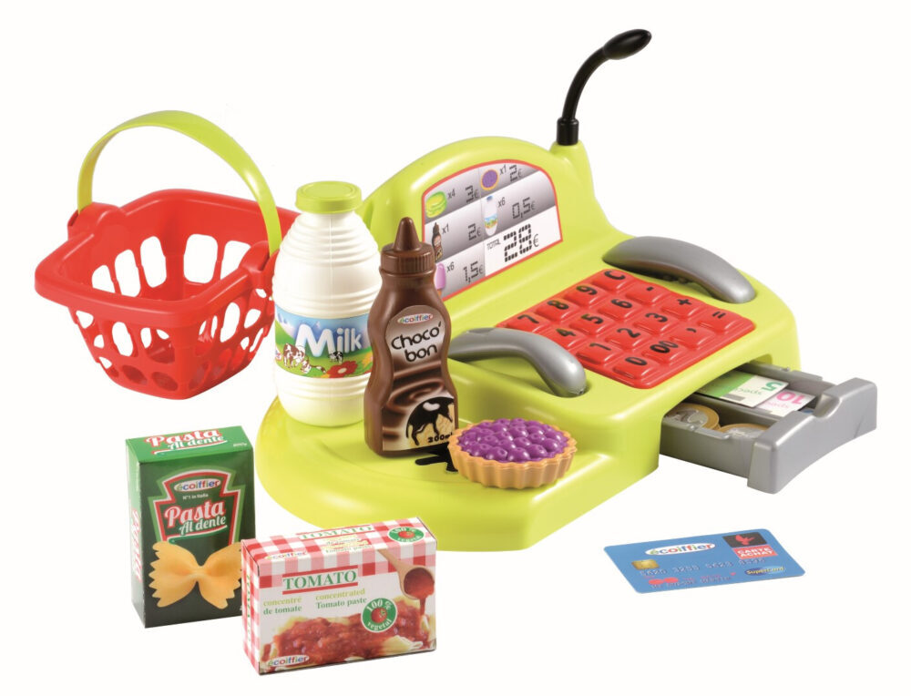 Upravljajte svojom prvom prodavaonicom sa blagajnom, mikrofonom, ladicom za gotovinu, kreditnom karticom i košarom s namirnicama.