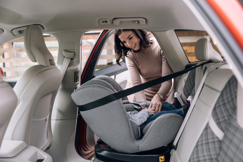 - Od 100 cm do 150 cm pričvrščivanje djeteta uz pomoć sigurnosnog pojasa automobila