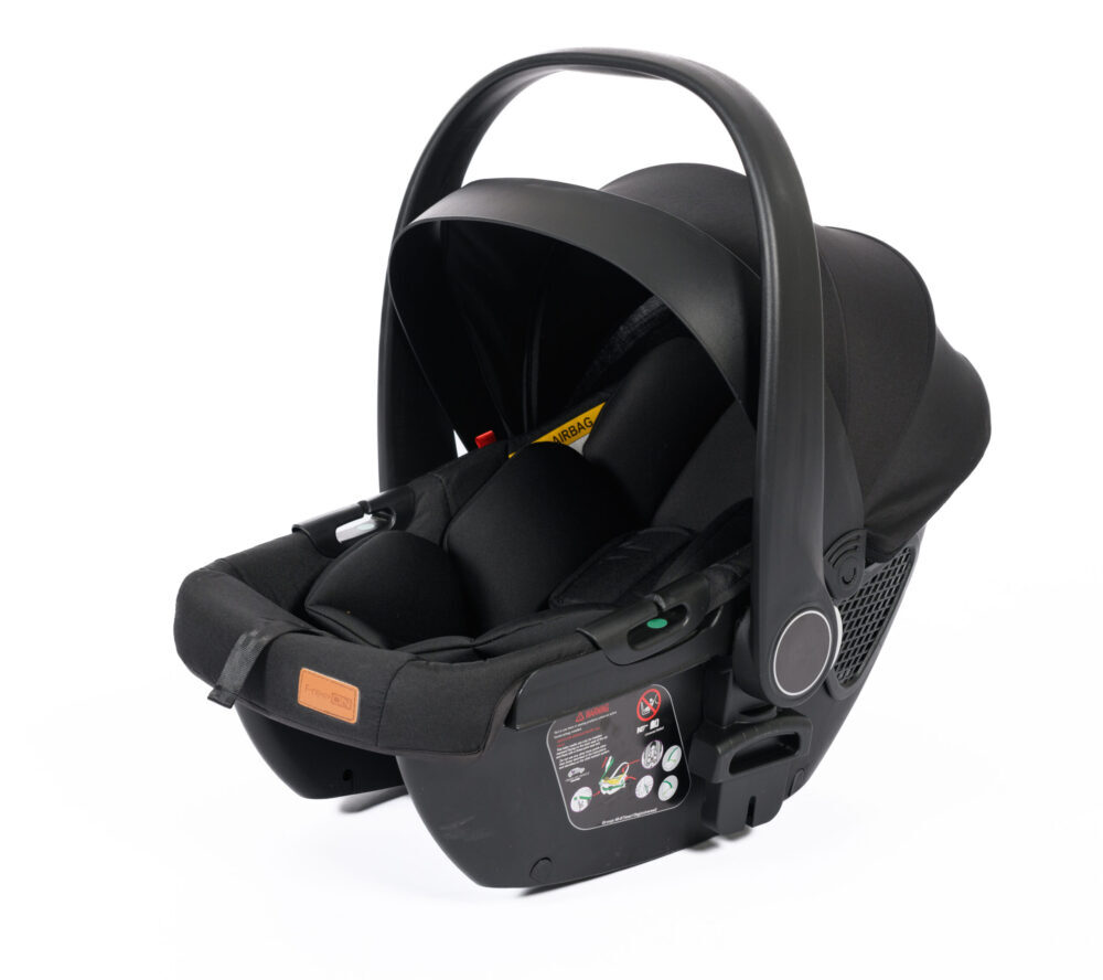 Autosjedalica za dijete od rođenja do visine 80 cm. Jedna od dijelova seta FreeON Comfort je autosjedalica jaje, koja je primjerena za dijete od rođenja do djetetove visine od 80 cm. Autosjedalica je ispitana prema standardu ECE R129. Nježna je, ali kompaktno podstavljena memorijskom pjenom u području glave. Autosjedalica ima ručku za lakše prenošenje. Postavlja se u vozilo pomoću pričvršćivanja u 3 točke sa sigurnosnim pojasom automobila. Montaža u vozilo je jednostavna, a autosjedalica se jednako lako i brzo skida iz vozila i po želji postavlja na aluminijsku konstrukciju kolica. Ova prva autosjedilca uvijek se koristi u vozilu u suprotnom smjeru vožnje.