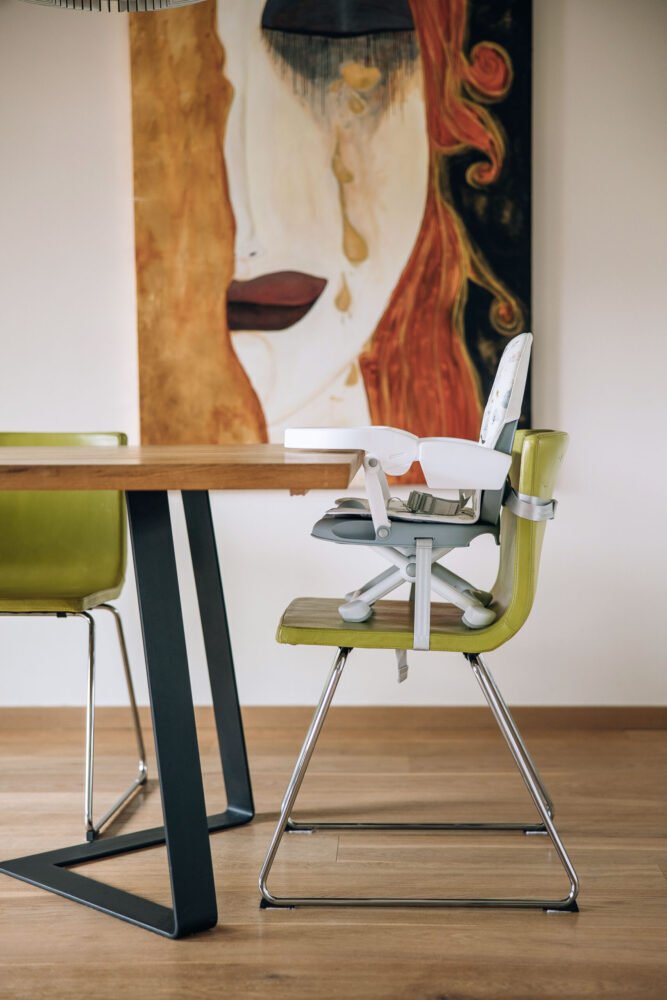 FreeON sklopiva hranilica Levi može se jednostavno i brzo namjestiti na 4 različite visine, što vam omogućuje da ga prilagodite različitim stolovima ili površinama. Vaše će dijete uvijek sjediti udobno i na pravoj visini, što potiče pravilno držanje tijekom obroka.