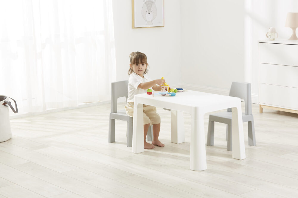 Dječji stol za igru, sa stolicama. Modernog izgleda, izvrstan dodatak dnevnom boravku, blagavaonici, dječjoj sobi ili igraonici. Djeca mogu crtati, stvarati, slikati, jesti, čitati, ili se igrati na njemu. Stol ima dvije ladice na izvlačenje, koje omogućuju odlaganje raznih potrepština kao što su bojice, papiri, kocke..
