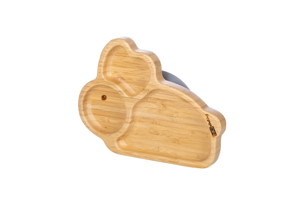 To vam omogućuje FreeON tanjur od bambusa, izrađen u obliku slatkih životinja, djetetu privlačnih. Odjeljci na tanjuru omogućuju odvajanje hrane na tanjuru.