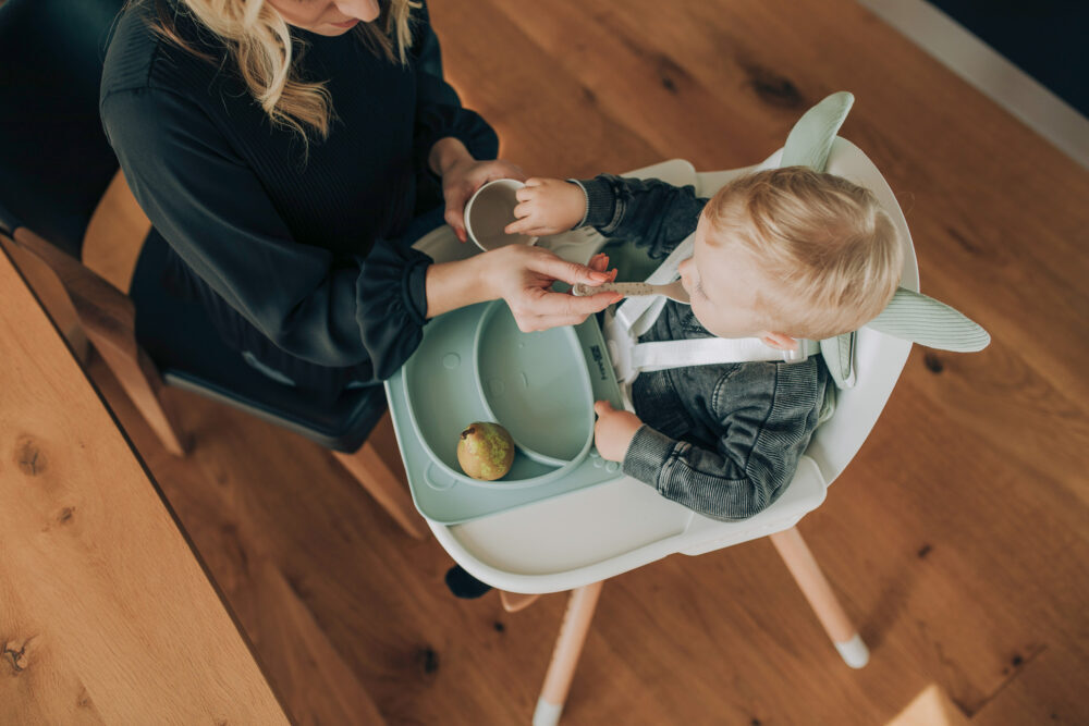 Silikonski tanjur za hranjenje u obliku medvjeda, koji se preljepi na ravnu glatku površinu i ne klizi.