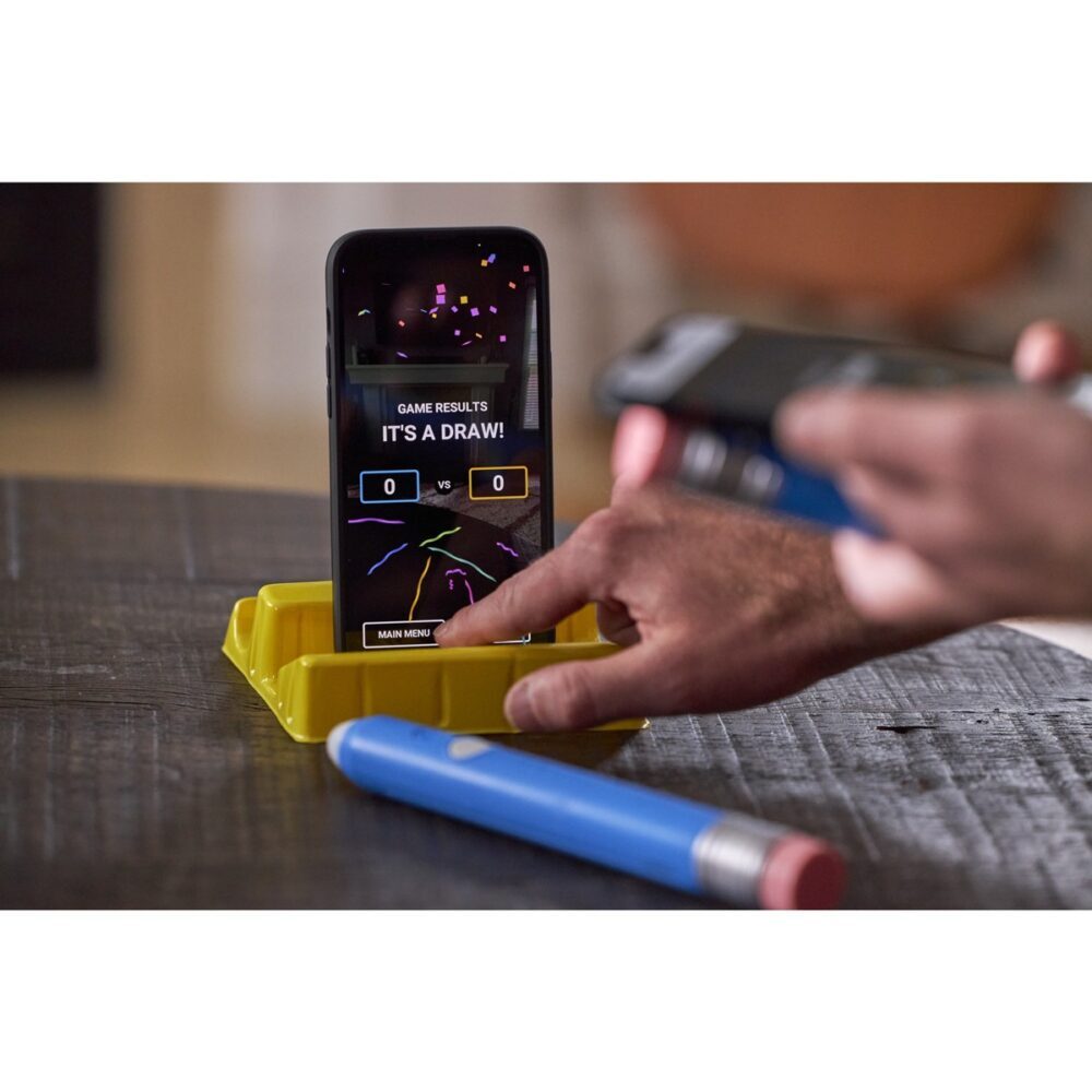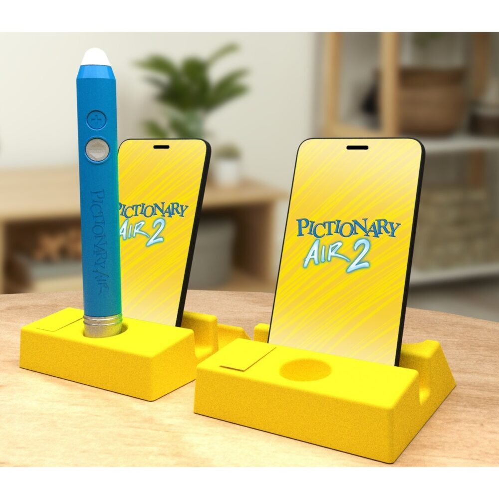 U paketu uključena su 2 stalka za uređaje: jedan za snimanje crteža, a drugi za čitanje pojmova. Za igranje su potrebna 2 pametna uređaja i besplatna aplikacija. 2 pametna uređaja nisu uključena. Za prijenos igre na TV potreban je uređaj za streaming.