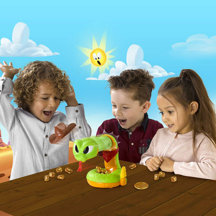Čegrtuša Jake ukrao je zlato – možeš li ga vratiti?Pazi na njegovo zveckanje dok pažljivo uklanjaš zlato. Igranje koje djeca poznaju i vole. Zloslutno zveckanje stvara veliku neizvjesnost!Za 2 ili više igrača.Dob 4+ god.