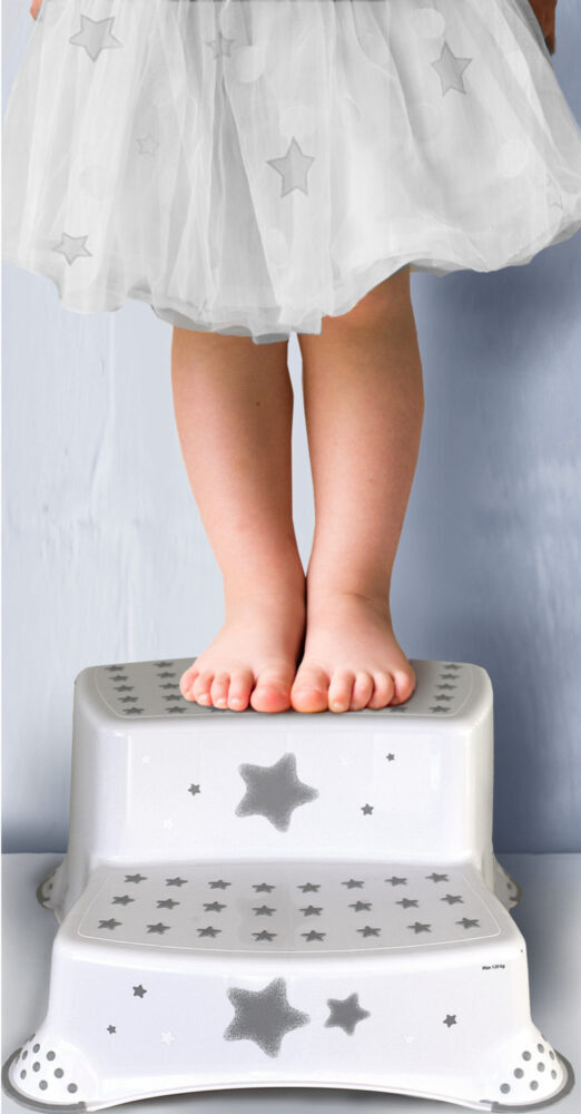 Dvostruka stepenica dizajnirana je za malu djecu, jer im dodatni korak omogućuje dosezanje viših površina. Istovremeno služi kao sigurna i stabilna podrška u dosezanju slavine na umivaoniku, WC sjedala, kao pomoć pri penjanju u kadu itd.