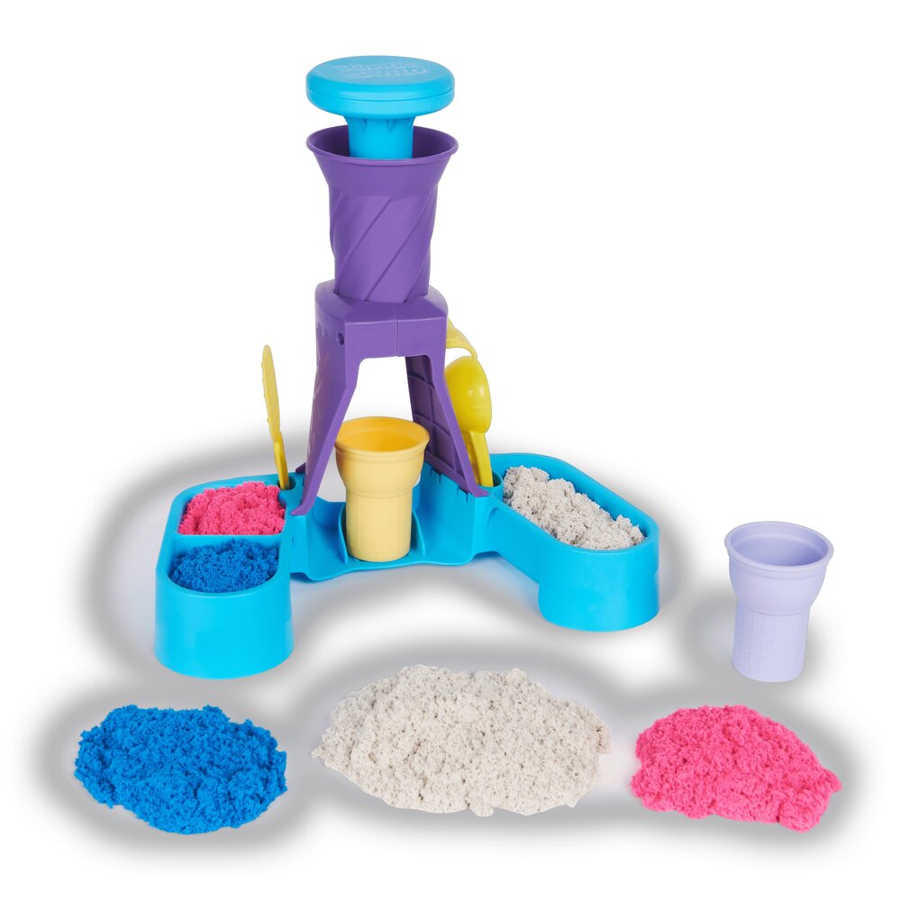Tko se ne voli rashladiti ukusnim sladoledom za vrijeme nesnosnih vrućina? Kako bi sjećanje na ovu omiljenu slasticu trajala i za vrijeme dosadnih jesenskih i proljetnih kišnih dana, na raspolaganju ti je set za maštovitu igru s originalnim kinetičkim pijeskom, a tema je, naravno, sladoled! Pomoću alata za oblikovanje koji su priloženi u setu oblikuj ukusne kuglice sladoleda i ukrasi ih po želji. Igra s kinetičkim pijeskom pomaže u razvoju motoričkih vještina, kao i senzorike, a mame ga obožavaju jer se ne lijepi za ostale površine – samo sam za sebe. Na taj način je lako pospremiti prostor za igru kada ona završi. Originalni kinetički pijesak se ne suši pa se s njim može igrati mnoštvo puta. U setu se nalazi 400 g kinetičkog pijeska, ukupno pet dodataka za igru i oblikovanje te upute za uporabu. Preporučena dob: 5+.