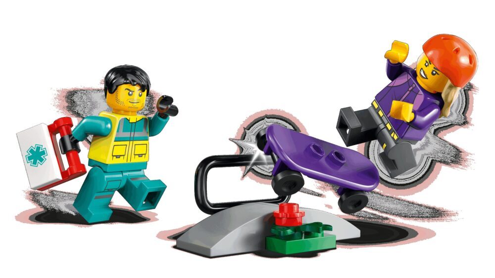 Jao! Djevojka je pala sa skateboarda i treba pomoć. Pridruži se bolničaru i pojurite do nje u kolima hitne pomoći. Vozilo izgleda sjajno, ali je i puno odličnih elemenata. Digni bočne ploče i otvori stražnja vrata da dođeš do nosila i drugog medicinskog pribora. Uzbudljive pustolovine spašavanja čekaju te u LEGO® Cityju!