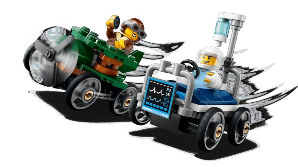 Organiziraj nevjerojatni minijaturni obračun u kompletu Utrka avion vs. bolnički krevet. Gradske utrke stigle su na ulice LEGO® Cityja, a konkurencija je urnebesna! Brzi avion natječe se protiv nevjerojatno okretnog bolničkog kreveta, zabava je zajamčena! Tko će prvi prijeći ciljnu liniju? Pilot ili doktor? Pripremi se da stisneš gas i zabaviš se kao nikad prije!