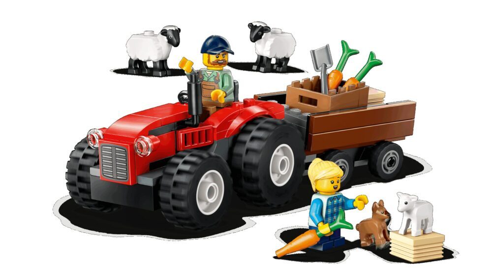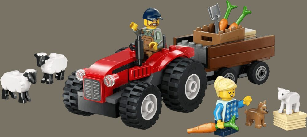 Pridruži se poljoprivredniku i njegovoj kćeri u selu pored LEGO® Cityja. Stavi prikolicu na traktor pa utovari bale sijena, košaru mrkve i slatkog psića. Tad je vrijeme da sjedneš u fora crveni traktor i kreneš prema poljima. Kad imaš ovako velike gume, neravno tlo ne može te omesti! Nahrani ovce ukusnim sijenom i pregledaj janjce. U LEGO Cityju čekaju te zabavne poljoprivredne pustolovine!
