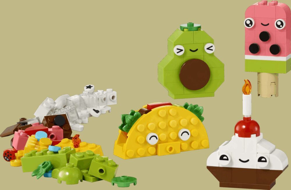 LEGO® Classic Kreativni prehrambeni prijatelji (11039) svestrani je komplet za slaganje za djecu od 4 godine i stariju. U njemu dobivaju mnogo zabavnih likova u obliku hrane pa je idealan za maštovitu igru pretvaranja. LEGO komplet za početnike nudi beskrajne mogućnosti slaganja, promjena i zabavnog istraživanja mogućnosti slaganja, pa mališani razvijaju samopouzdanje, koncentraciju i vještine rješavanja problema. Od šarenih i predivnih kocaka za slaganje i posebnih dijelova, kao što su oči, usta i razni ukrasni elementi, djeca mogu sastaviti 4 slatka prehrambena prijatelja: kolačić, sladoled, avokado i taco. No to nije kraj kreativne zabave jer djeca mogu pomiješati kocke i pretvoriti ih u tortu s mrvicama, čaj s bobama, krušku i panini. Kad djeca postanu sigurnija u svoje vještine slaganja, mogu pratiti intuitivni priručnik za slaganje da promijene izraze lica, oblike ili boje i stvore nove prehrambene prijatelje, kao što su zeleni sladoled, tetrapak soka, kriška lubenice, čokoladica i mega sendvič.