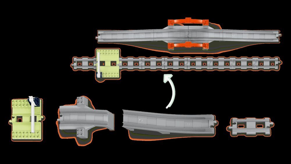 Ubrzajte razvojni put svojeg mališana kompletom za proširenje tračnica. Ima složivi podignuti most i 8 ravnih dijelova tračnica kako bi vlak LEGO® DUPLO® krenuo u potpuno novu pustolovinu. U njemu je i funkcionalan element rampe koji mališani mogu podizati i spuštati te figura strojovođe s mobitelom. Akcijska kocka oživljava igru jer se vlak može zaustaviti i proizvoditi zvukove.