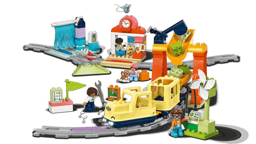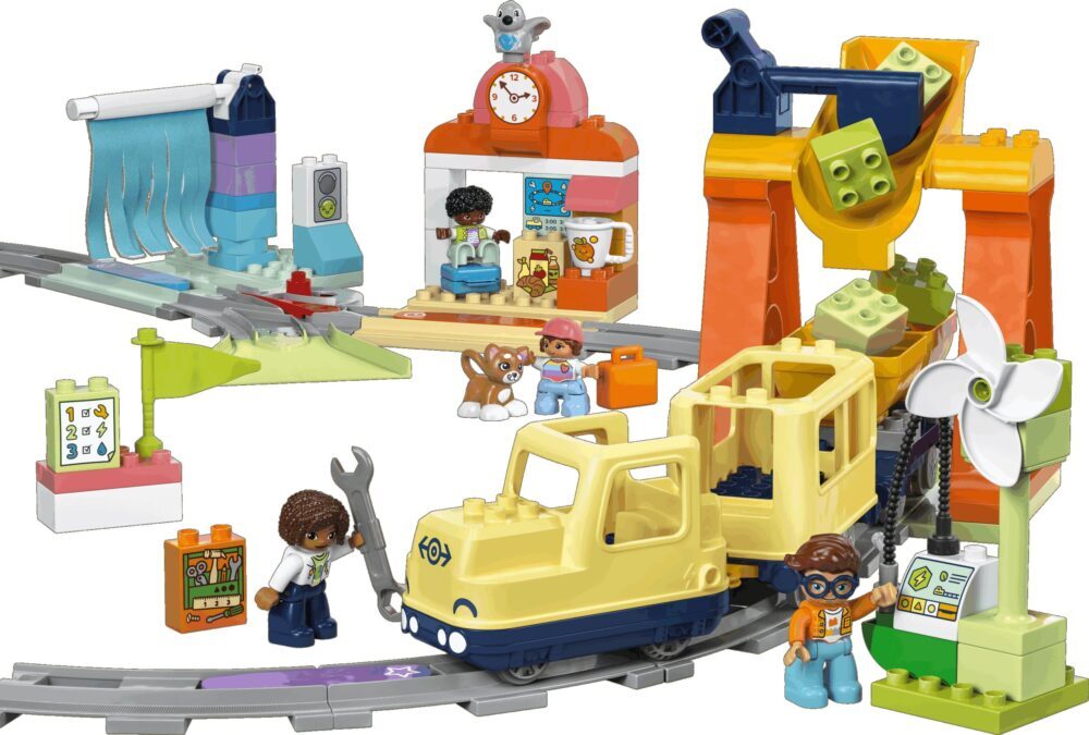 Mališani kreću na uzbudljivo edukativno putovanje u zabavnom kompletu s interaktivnim vlakom. Prvo slažu tračnice, a onda sjedaju na mjesto strojovođe i odabiru kojim će se zabavnim aktivnostima baviti u vlaku. Mogu ga oprati, utovariti teret u njega i pokrenuti lokomotivu. Za svaku aktivnost imaju akcijsku kocku uz koju igra oživljava!