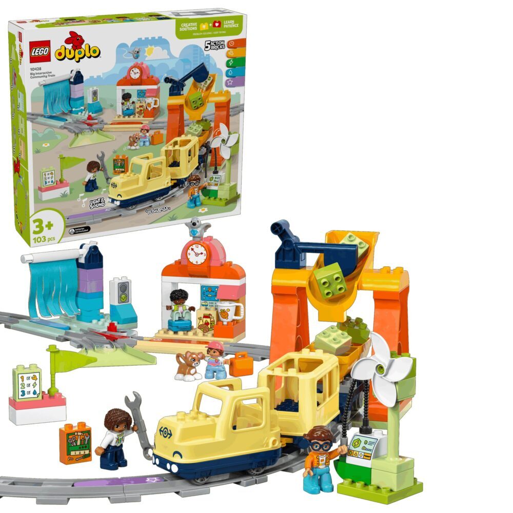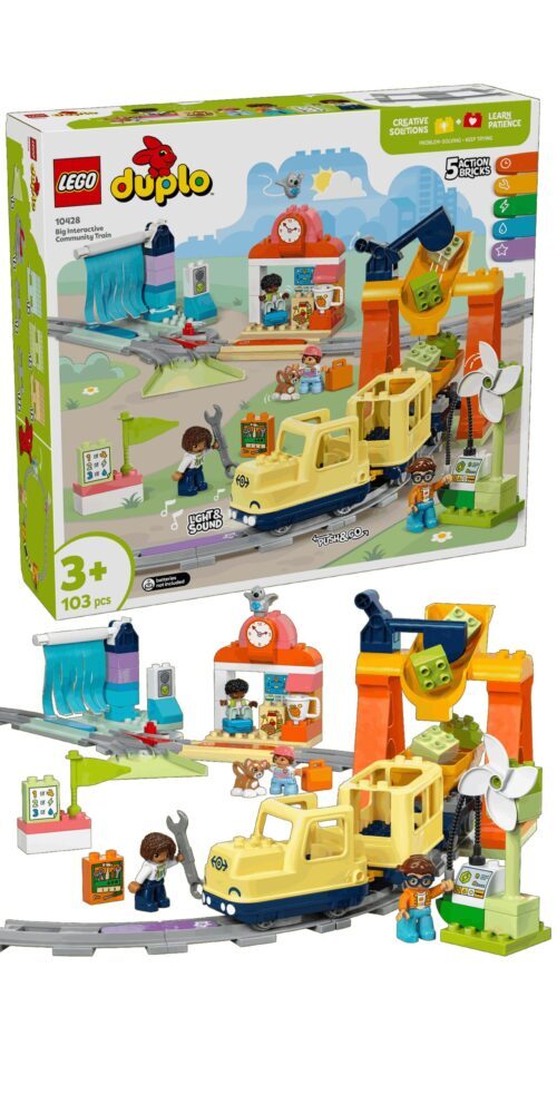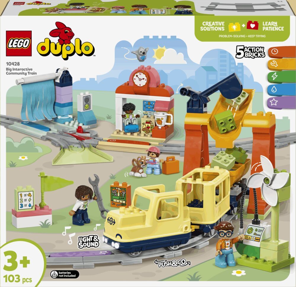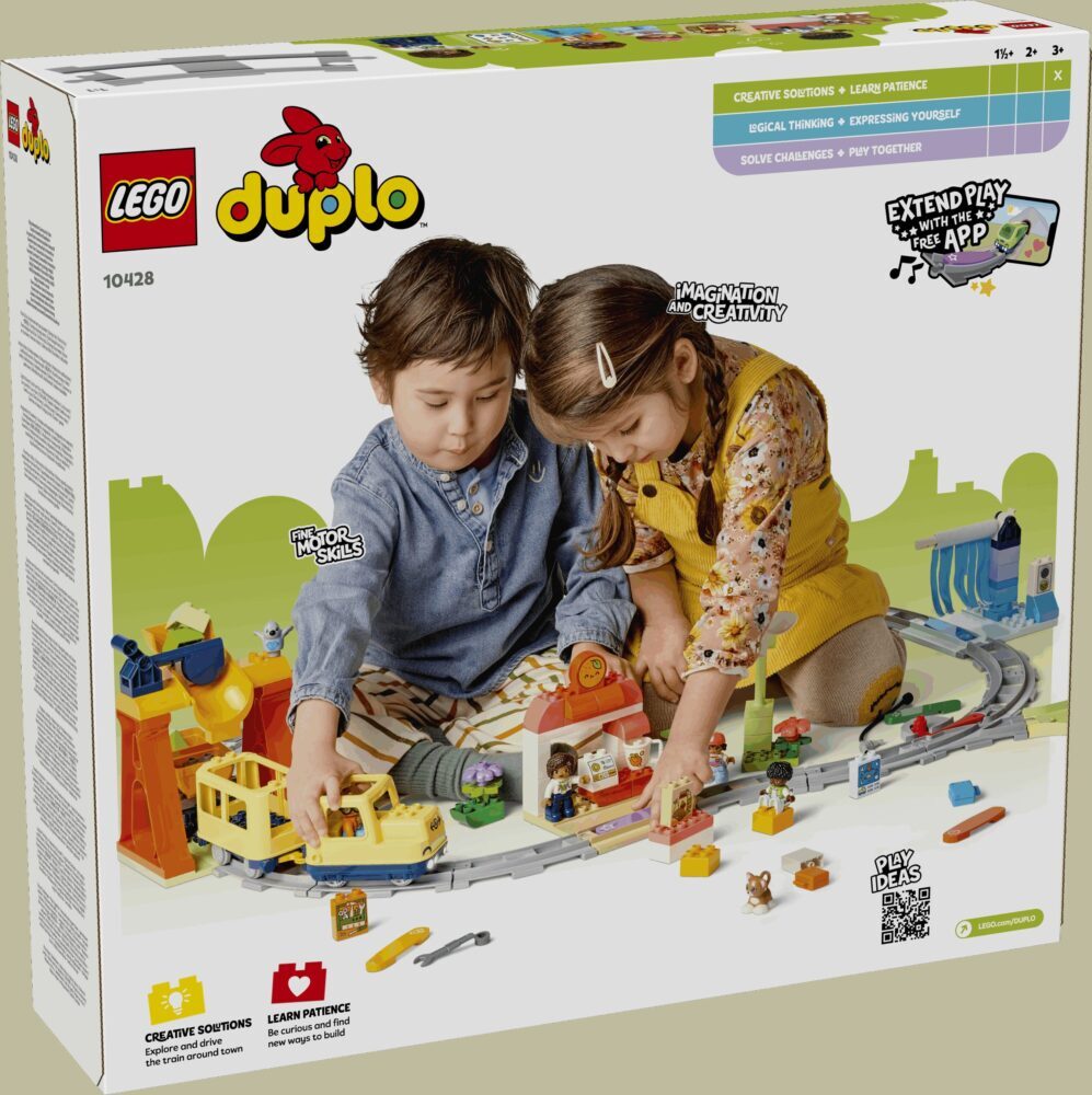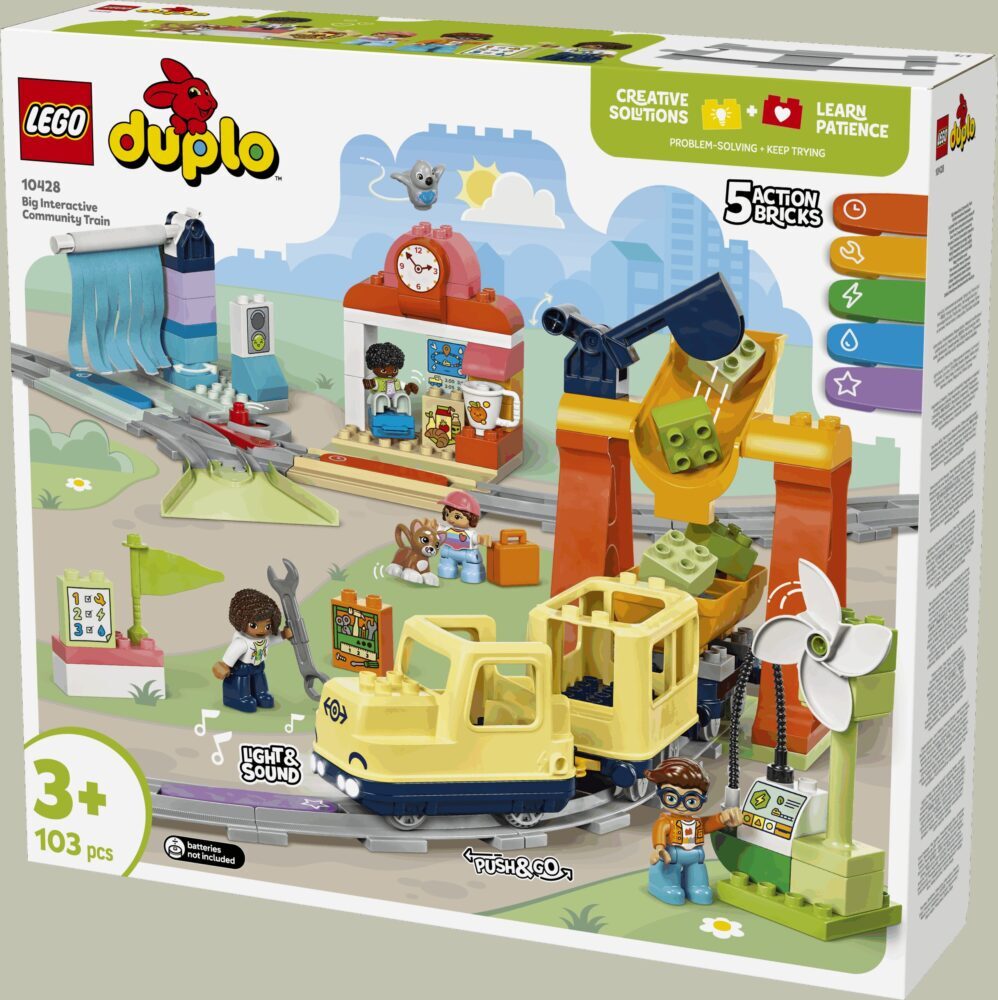 Predškolska djeca dobi 3+ idu na maštovito putovanje u kompletu Veliki interaktivni gradski vlak (10428) za mališane. Zabavni komplet ima mnogo elemenata i funkcija te 4 raznolike figure za sate učenja kroz igru. Edukativno putovanje mališana počinje na željezničkoj postaji u kompletu. Predškolska djeca kreativno razmišljaju da osmisle put za putnički vlak na guranje, usput prihvaćajući zabavne izazove. Mogu utovariti teret u vlak, pokrenuti lokomotivu ili oprati vagone. Svaka je aktivnost zanimljivija zbog svjetala i zvukova koji se pojave kad model vlaka prijeđe preko jedne od 5 akcijskih kocaka. U kompletu se razvijaju strpljenje i znatiželja dok mališani eksperimentiraju s novim načinima slaganja pruge. U besplatnoj aplikaciji LEGO® DUPLO® Interactive Trains mališani mogu snimiti zvukove za putovanje željeznicom i upravljati lokomotivom koristeći se prijenosnim elektroničkim uređajem, a obitelji dobivaju inspiraciju za slaganje novih modela.