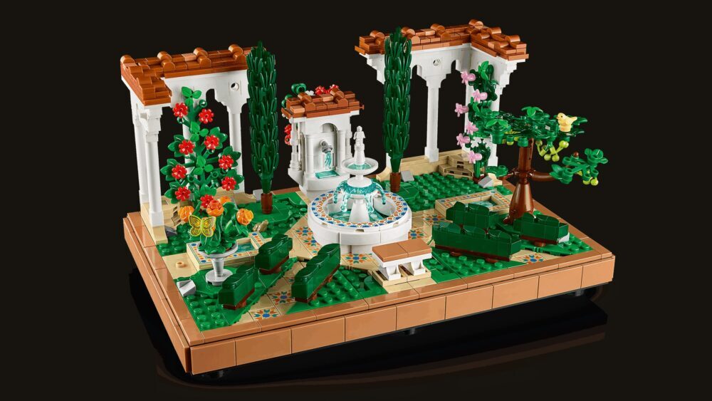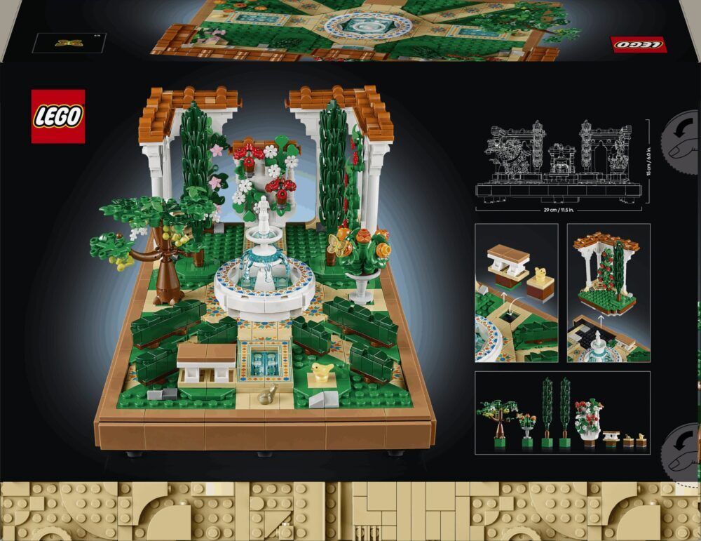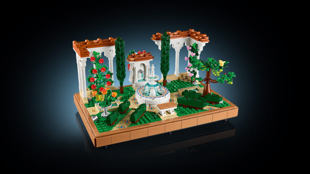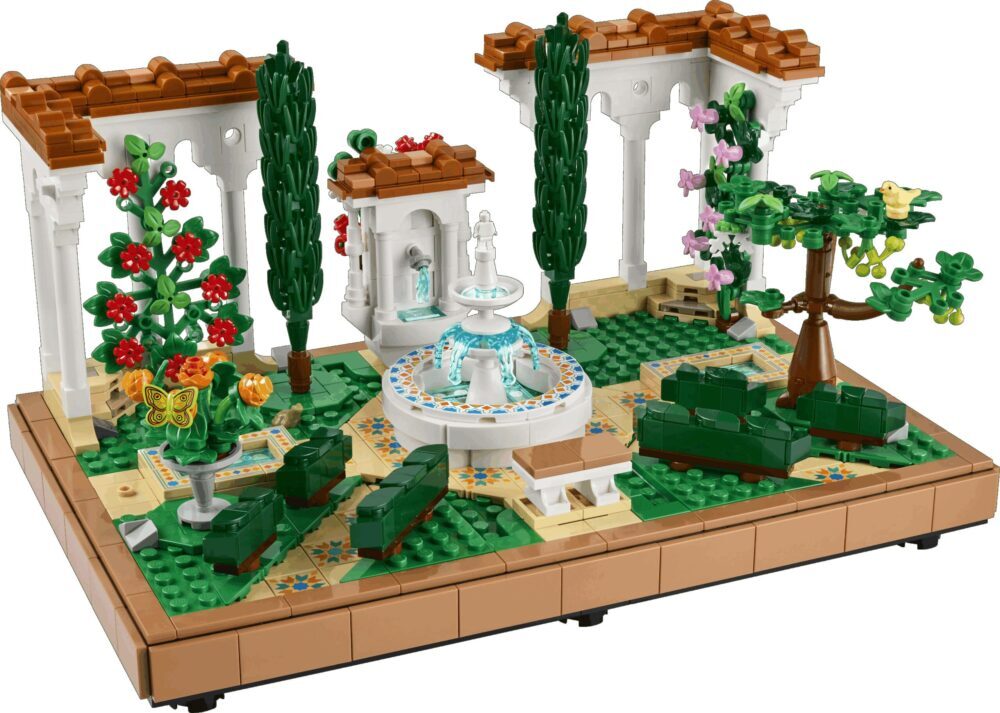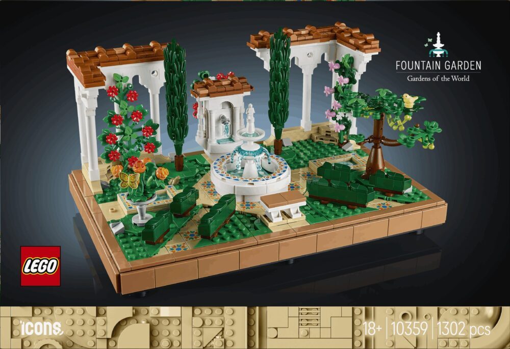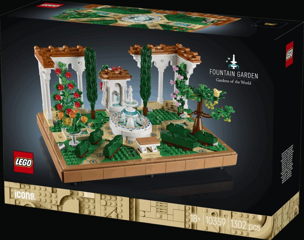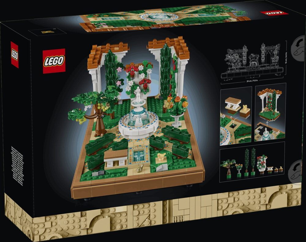 Prepustite se toplini LEGO® Icons Vrta s fontanom. Složite čudesnu oazu s fontanom na kat, ukrasnim bazenčićem, stazicama s dekorativnim pločicama, stablima, životinjama i cvjetnim viticama koje krase pergole s bijelim stupovima i crvenim krovovima. Uživajte u trenucima potpune svjesnosti dok slažete i uređujete vrt dok ne postignete savršen izgled pa ga ponosno izložite da mu se svi dive.