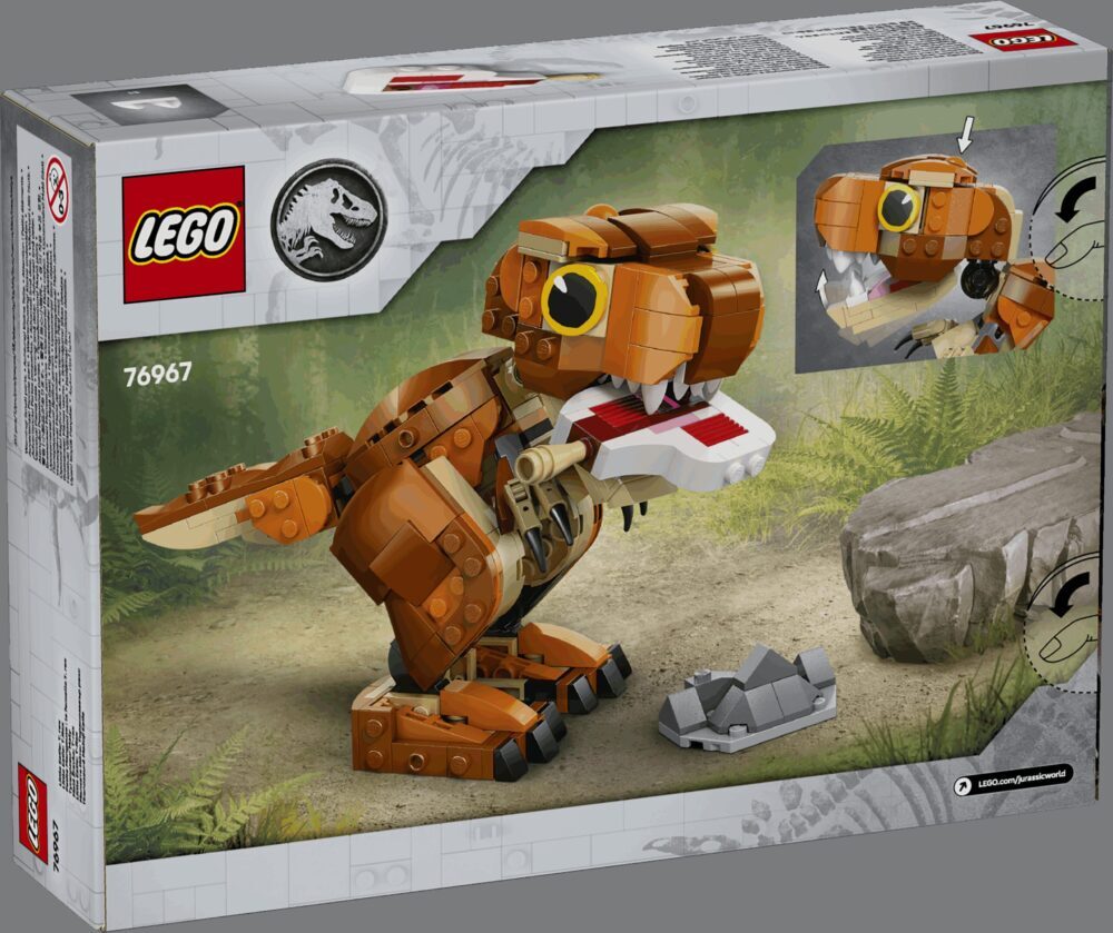 Male obožavatelje dinosaura od 7 godina i starije čekaju uzbudljive pustolovine, brižna i zabavna igra u modelu LEGO® Jurassic World Malena Eatie: T. rex (76967) s mnogo mogućnosti za igru i izlaganje. Mladi timaritelji dinosaura prvo mogu sastaviti LEGO komplet za slaganje dinosaura, a onda uroniti u igru i istražiti prapovijesni svijet s Malenom Eatie iz serije Mali junaci Jurskog svijeta. U kompletu igračaka iz serije Jurski svijet: Teorija kaosa je figura T. rexa od kocaka s interaktivnom čeljusti. Ima i pomični rep i udove, pa se može izložiti u raznim položajima. Poslije igre dječaci, djevojčice i obožavatelji mogu izložiti figuru dinosaura na policu ili stol. Poklon za djecu idealan je za maštovitu igru i može se kombinirati s drugim modelima iz linije LEGO Jurassic World (prodaju se zasebno). Uz LEGO komplet s dinosaurom djeca mogu sudjelovati u prizorima iz animirane serije ili pokazati koliko vole Jurski svijet. Komplet je idealne veličine za zabavu na putu.