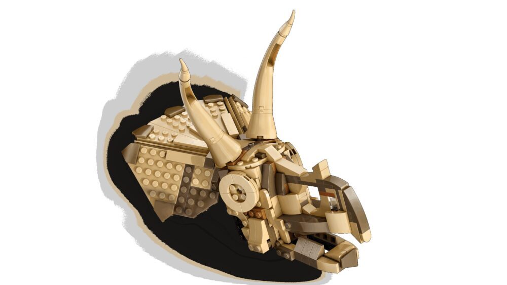 Složi lubanju triceratopsa! Udubi se u model iz linije LEGO® Jurassic World i složi fosilnu lubanju dinosaura za svoju kolekciju. Model dinosaura ima pomičnu čeljust s elementom „jantara” u „kamenom” postolju. Dodaj mu informativnu pločicu, ploču s malim fosilima iLEGO figuricu mladog paleontologa. Skini lubanju dinosaura s postolja i uredi ukras po svom ukusu kad god želiš.