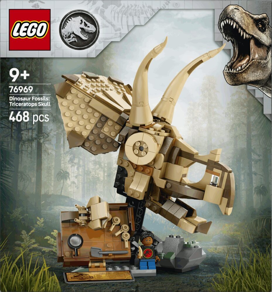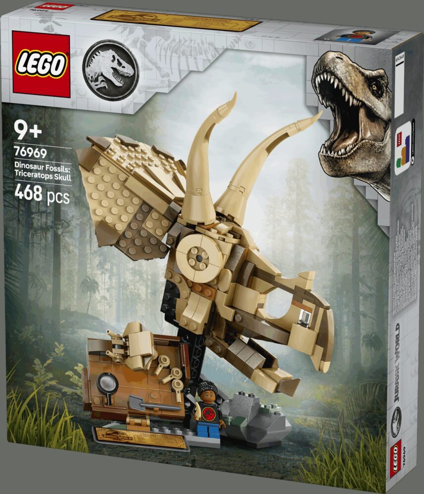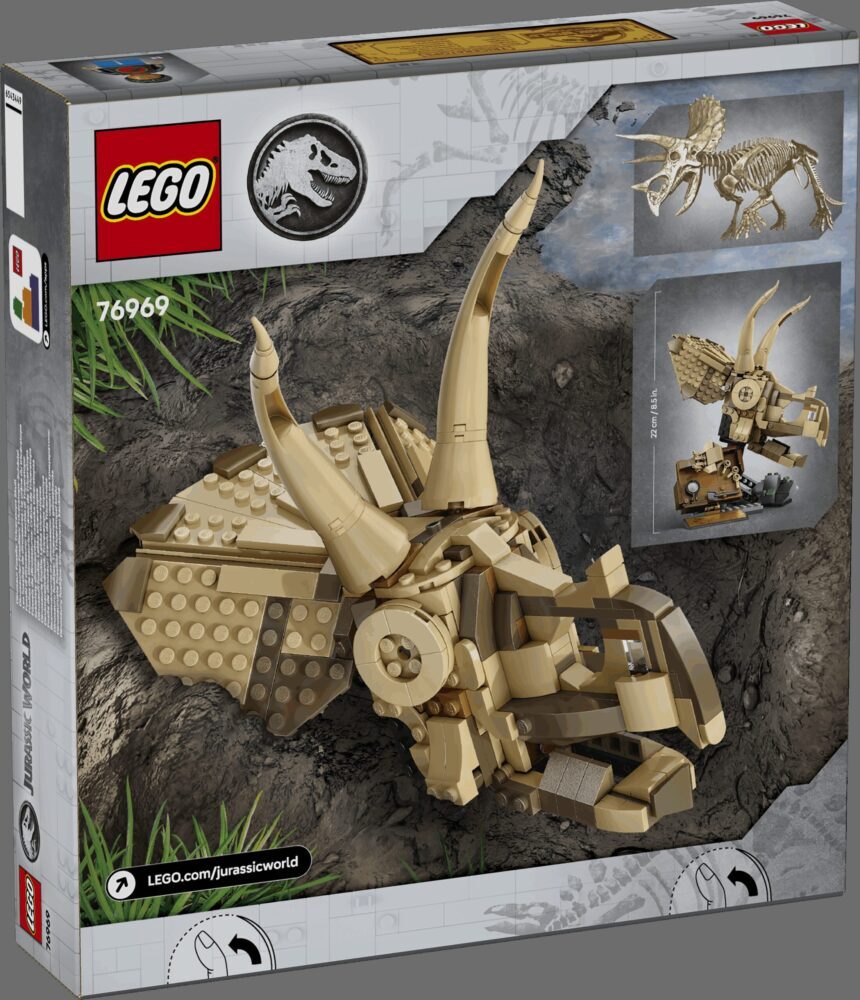 Mladi paleontolozi od 9 godina i stariji mogu uživati u maštovitoj igri iz Jurskog svijeta i sakupljati fosile dinosaura u kompletu za slaganje LEGO® Jurassic World Fosili dinosaura: lubanja Triceratopsa (76969). Komplet iz linije Fosili dinosaura sastoji se od lubanje triceratopsa s čeljusti koja se otvara, „kameno” postolje, ploču za male fosile i alat za iskopavanje, LEGO figuricu, informativnu pločicu i element „jantara” u koji je zarobljen komarac. Aplikacija LEGO Builder odvest će zaljubljenike u dinosaure u intuitivnu pustolovinu slaganja u kojoj mogu približavati i okretati trodimenzionalne modele, spremati komplete i pratiti napredak. Dok slažu, osjećat će se kao pravi paleontolozi kada nešto otkriju! Pronađite i druge komplete iz linije LEGO Jurassic World (prodaju se zasebno) koji će potaknuti djecu na maštovitu igru, s modelima dinosaura za slaganje klasičnih prizora ili za slaganje i pokazivanje interesa svima. Kompleti su zabavni pokloni za djecu, ljubitelje dinosaura i obožavatelje svih uzrasta.