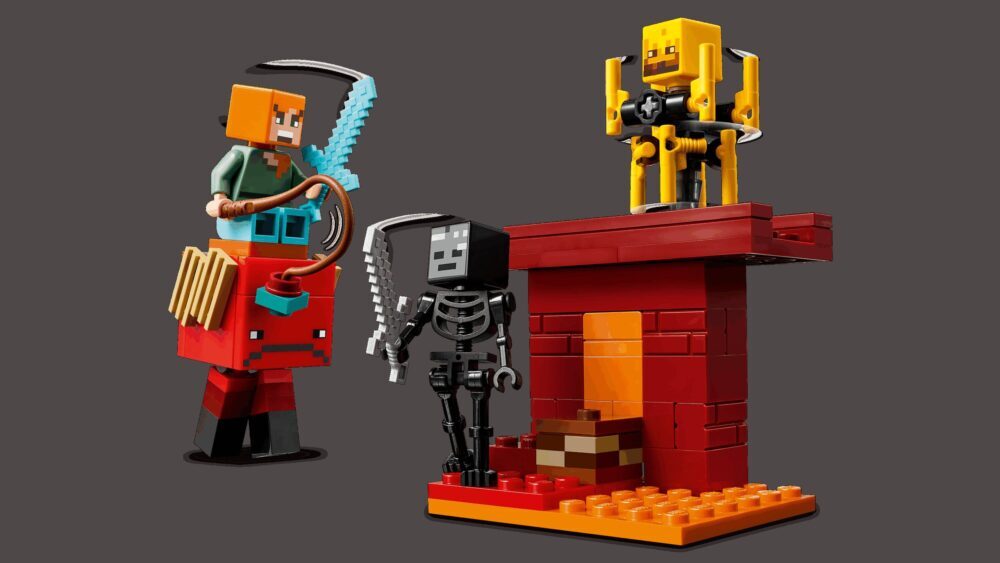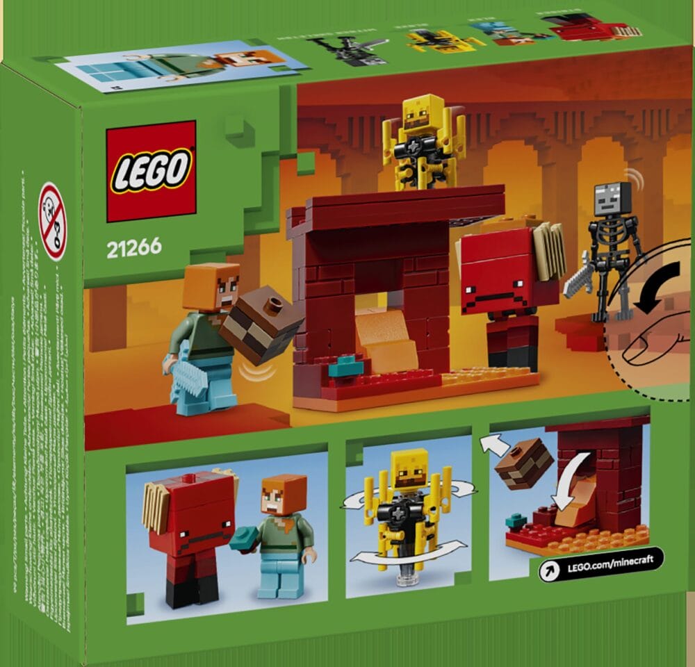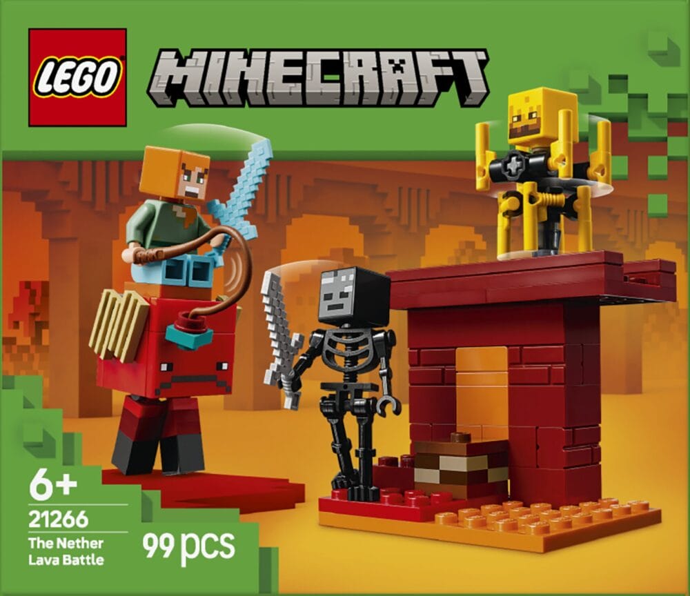 U malom kompletu Bitka uz lavu Nethera (21266) iz linije LEGO® Minecraft® dobivate verziju popularne videoigre za igru i slaganje u stvarnom svijetu. Komplet za razne aktivnosti iz Minecrafta savršen je dar za djecu od 6 godina i stariju jer uključuje popularne figure likova iz videoigre, zabavne elemente i neograničenu akciju. Djeca s akcijskom junakinjom iz Minecraft Alex kreću u misiju uklanjanja drevnih krhotina s dijela mosta utvrde u Netheru u grimiznoj šumi. Kada uklone krhotine, elementi lave automatski padaju, a figure likova iz Minecrafta, kostur iz withera s kamenim mačem i plamenko sa štapom, zaustavljaju Alex u bijegu. Djeca se bore protiv neprijatelja legendarnim dijamantnim mačem, a onda bježe na još jednom liku iz Minecrafta, hodaču, koji ima pomične noge i sedlo. Igrači Minecrafta znaju da moraju doći do zakrivljenih gljivica da mogu upravljati njime. Ako djeca žele još digitalne zabave, u aplikaciji LEGO Builder mogu približavati i okretati trodimenzionalne modele na svom uređaju.