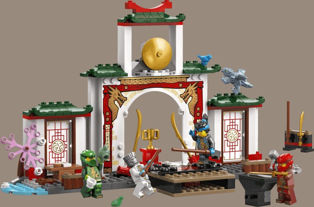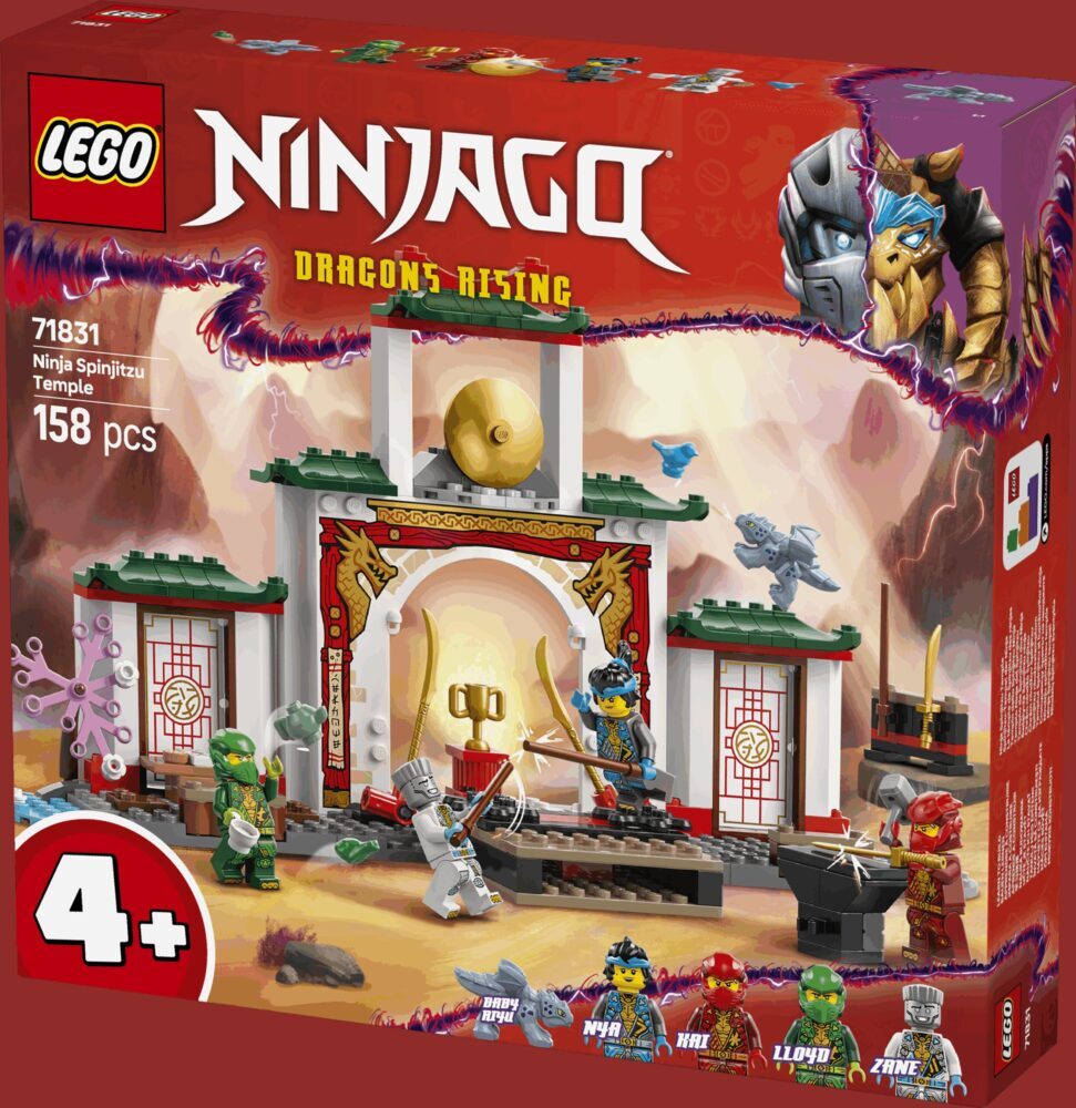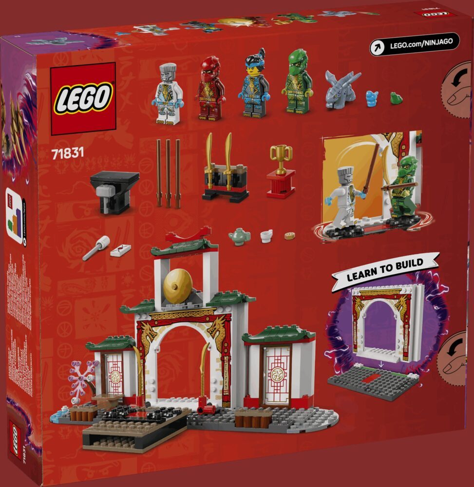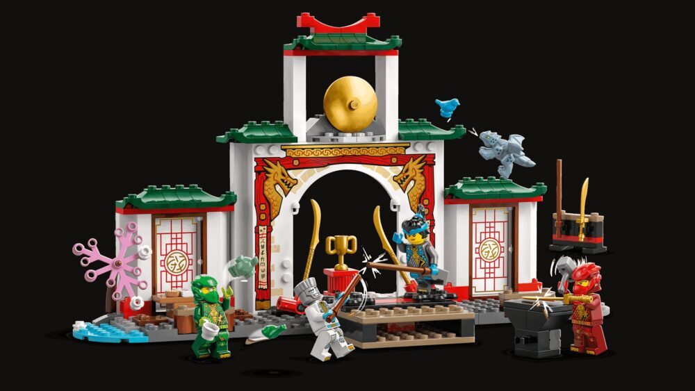 Obučavaj omiljene junake ninje u odličnom hramu spinjitzua! Nya, Kai, Lloyd i Zane spremni su za trening na pomičnim platformama posebne pozornice za turnire jer žele usavršiti borbene vještine. Kad se odmaraju od vježbi, mogu se družiti u čajani, opustiti u malom vrtu, igrati se s bebom Riyuom ili tražiti skriveno pismo. Postani ninja!