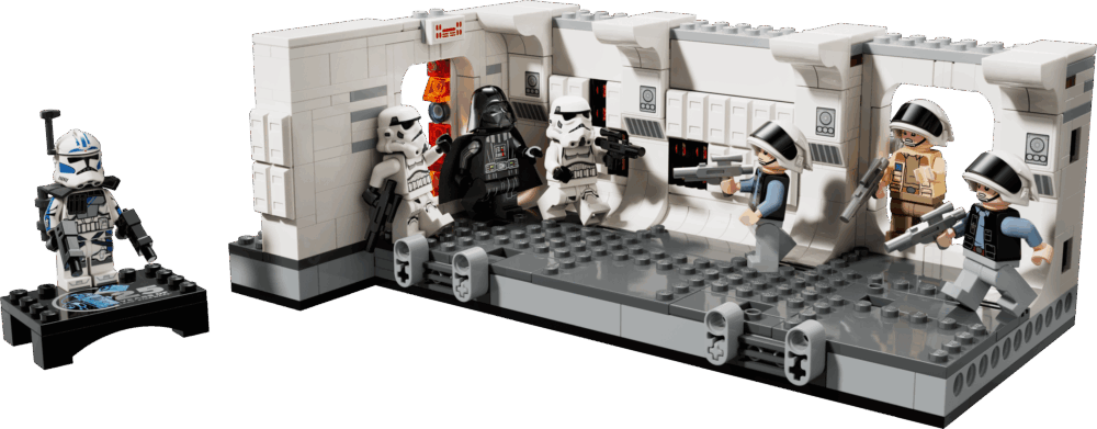 Kolekcionarska igračka za slaganje iz fantastičnih Ratova zvijezda™ za djecu. Sudjelujte u ukrcavanju Dartha Vadera i njegovih stormtroopera na Tantive IV iz filma Ratovi zvijezda: Nova nada u složivom kompletu igračaka (75387) za djecu od 8 godina i stariju. Dolazi s detaljnim modelom hodnika na brodu Tantive IV, gdje su se stormtrooperi Dartha Vadera borili protiv vojnika pobunjeničke vojske generala Antillesa, s polugama za „raznošenje” ulaznih vrata i rušenje likova tijekom borbe. Ima i spojne elemente kako bi graditelji mogli dodati još jedan komplet 75387 (prodaje se zasebno) da produlje hodnik. Kolekcionarski komplet fantastičnih igračaka dolazi sa 7 figurica iz linije LEGO® Star Wars™, uključujući Dartha Vadera, 2 stormtroopera, 2 pobunjenička vojnika i kapetana Antillesa s dodacima za akcijsku igru. Komplet igračaka vrhunski je dar za mlade obožavatelje Ratova zvijezda i kolekcionare, a u njemu je i posebna figurica ARC vojnika Fivesa za 25. godišnjicu linije LEGO Star Wars s postoljem. Odglumi kako Darth Vader zauzima Tantive IV kao u filmu Ratovi zvijezda: Nova nada. Raznesi vrata i neka počne borba laserskim puškama stormtroopera Dartha Vadera i pobunjeničkih vojnika generala Antillesa. Tko će pobijediti ovaj put? Ti odlučuješ! Kada pobijediš u bitki, izloži prizor od kocaka pored posebne figurice ARC vojnika Fivesa za 25. godišnjicu linije LEGO® Star Wars™.