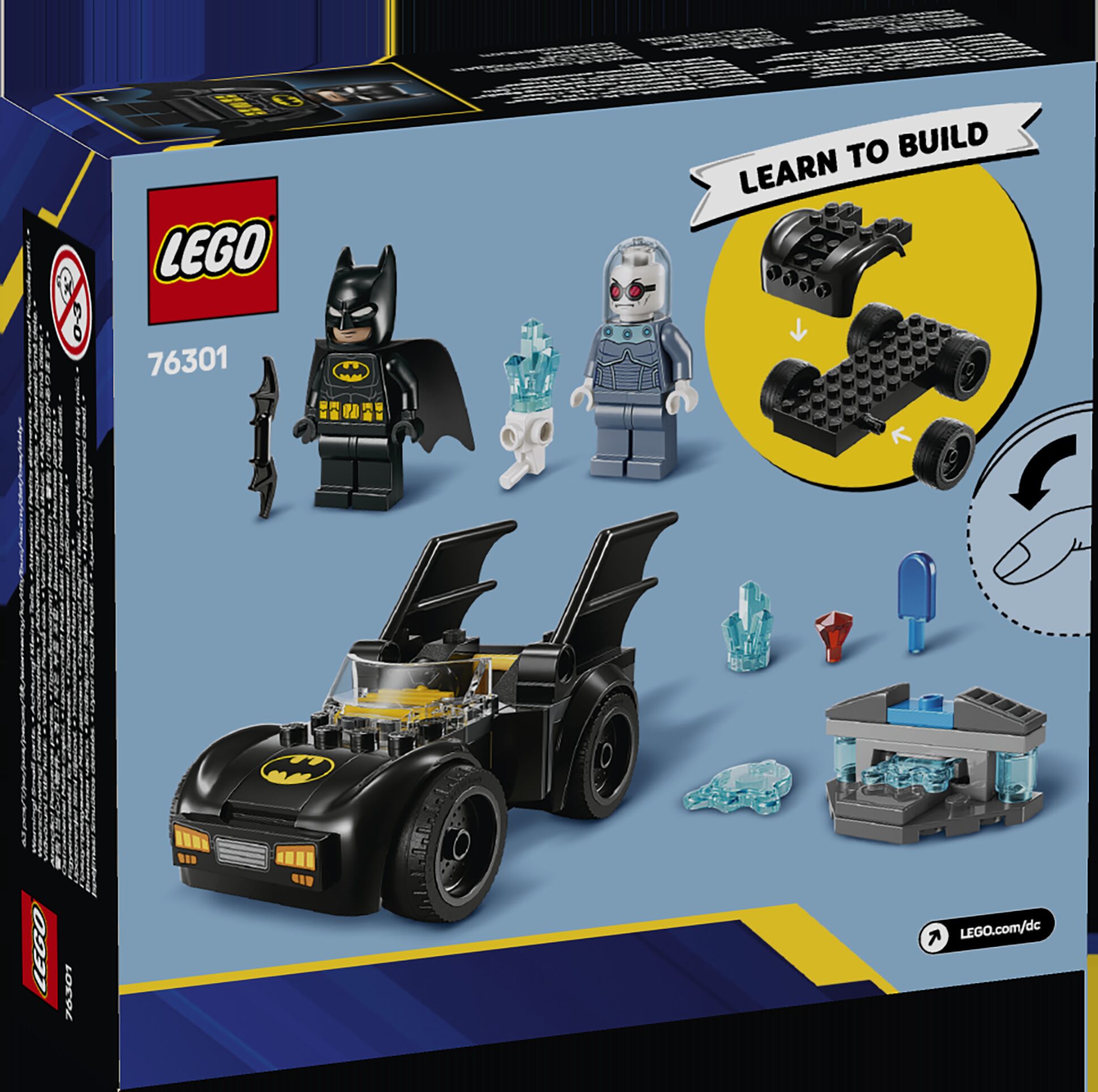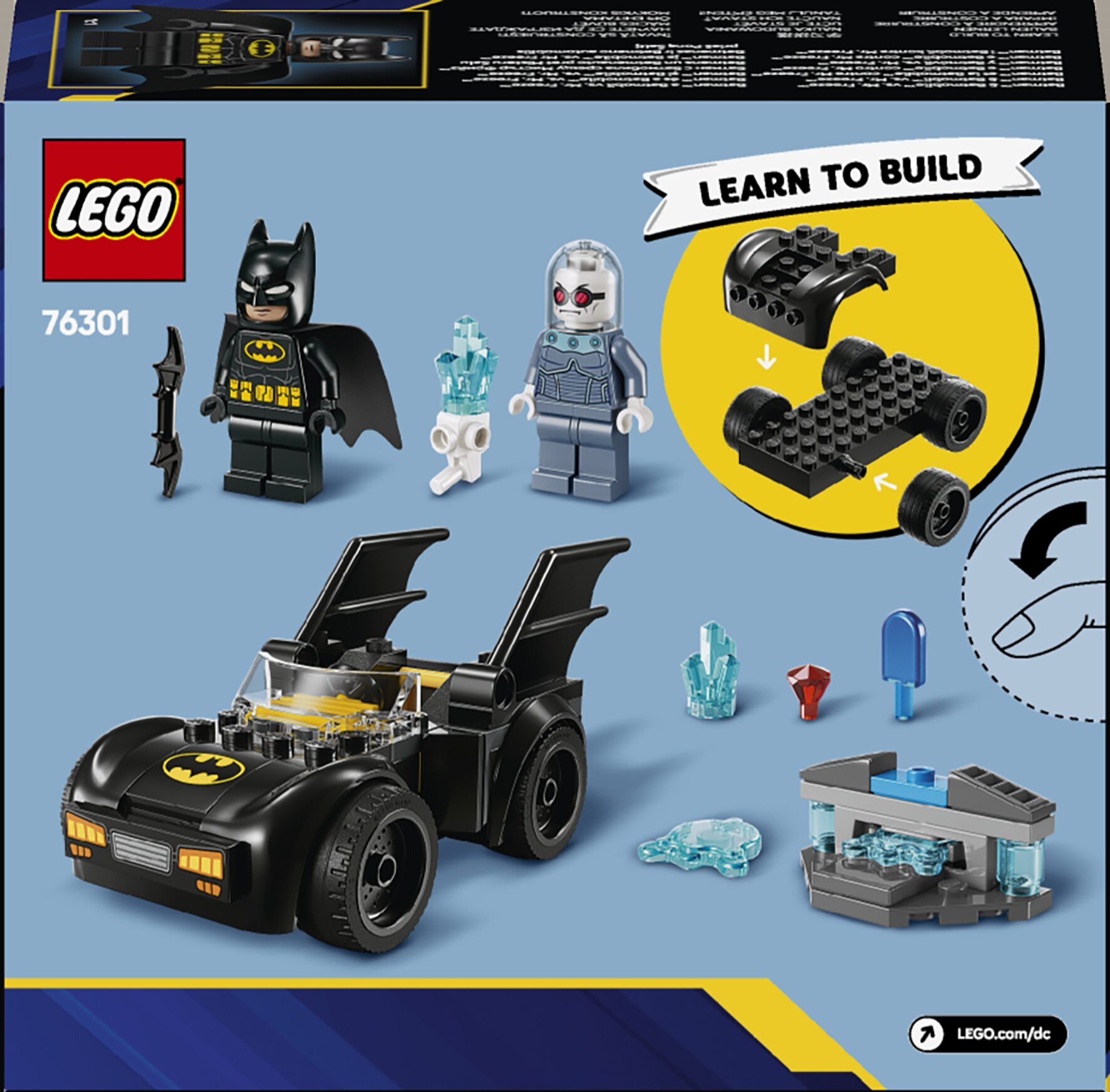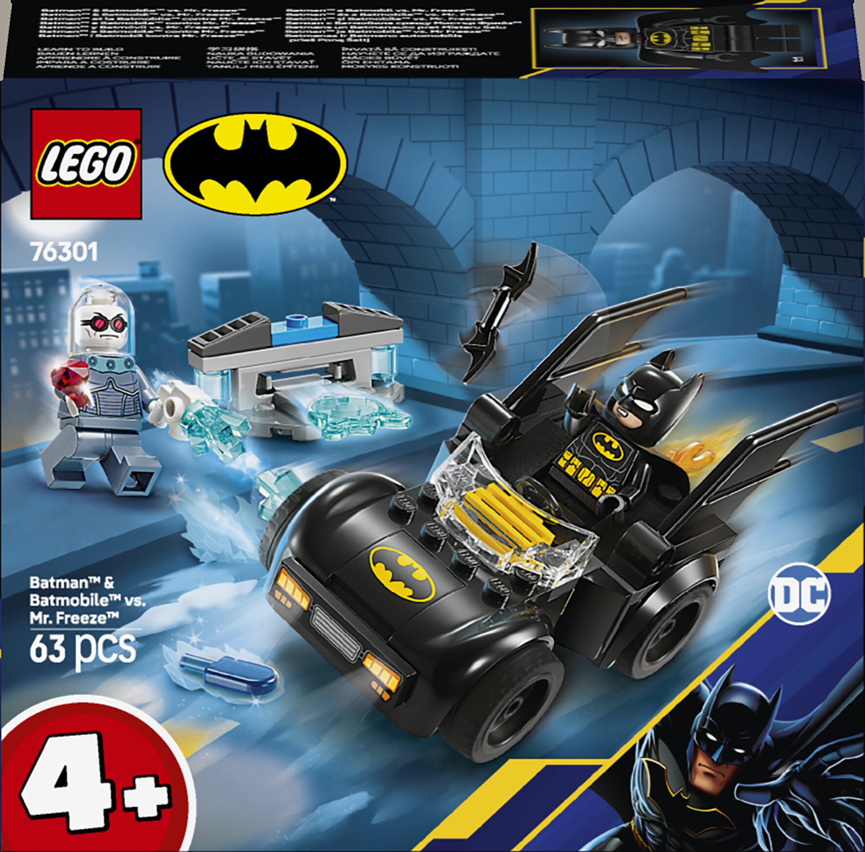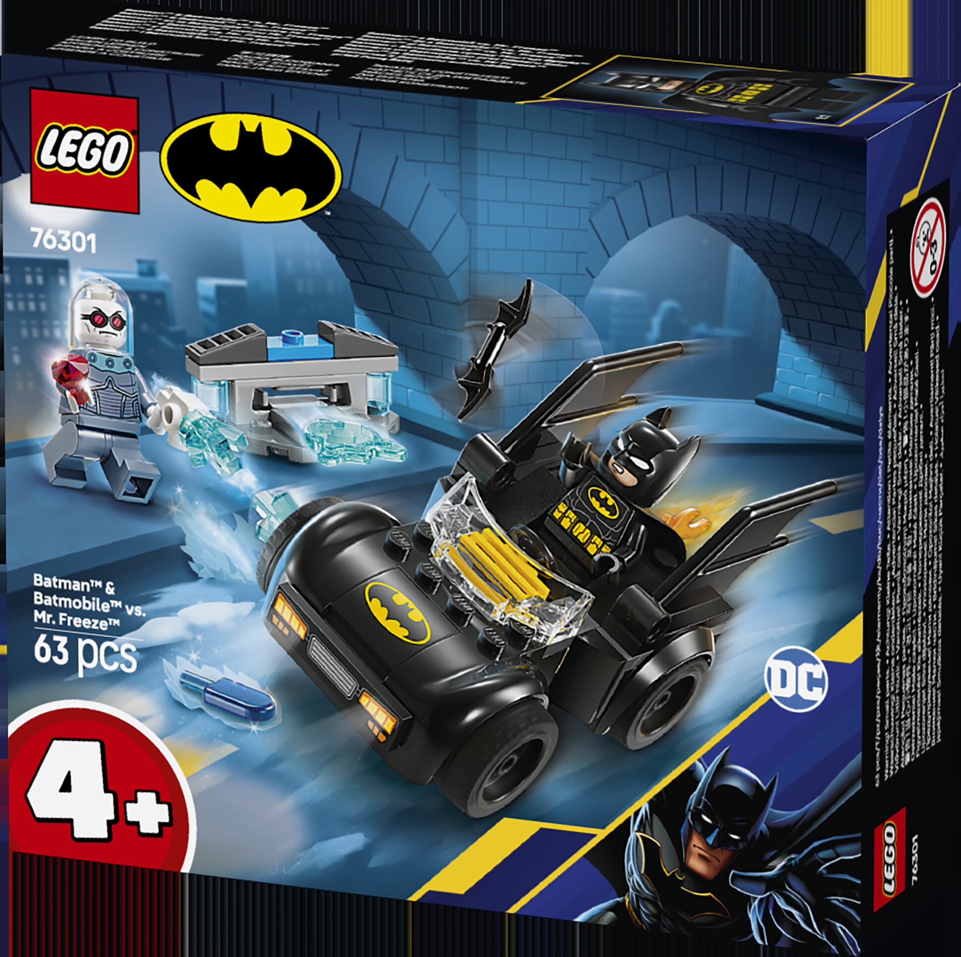 Kreativni LEGO® komplet Batman™ i Batmobile™ protiv Mr. Freezea™ (76301) osmišljen je tako da djeci od 4 godine i starijoj pomogne u razvoju vještina slaganja dok sudjeluju u pustolovinama sa superjunacima™. Komplet za igru iz linije LEGO DC pun je elemenata za aktivnu igru predškolske djece i malih obožavatelja Batmana i fora vozila. U kompletu su figurice Batmana i Mr. Freezea kao i složivi Batmobile u koji figurica Batmana može sjesti. Djeca mogu ispaljivati elemente leda iz pucača s otvorom u koji se mogu staviti ispaljivač leda ili sladoled Mr. Freezea. Djeca mogu staviti 2 ledena dijamanta na više mjesta na Batmobileu i tako odlučiti kako će ga Mr. Freeze zamrznuti. Uz igračku dobivaju i šareni priručnik s pričom u slikama i intuitivnim uputama. Zahvaljujući zasebnim vrećicama kocaka i velikoj početničkoj kocki slaganje je brzo i zabavno. LEGO kompleti za uzrast 4+ savršeni su za roditelje koji žele slagati i zabavljati se s mališanima.