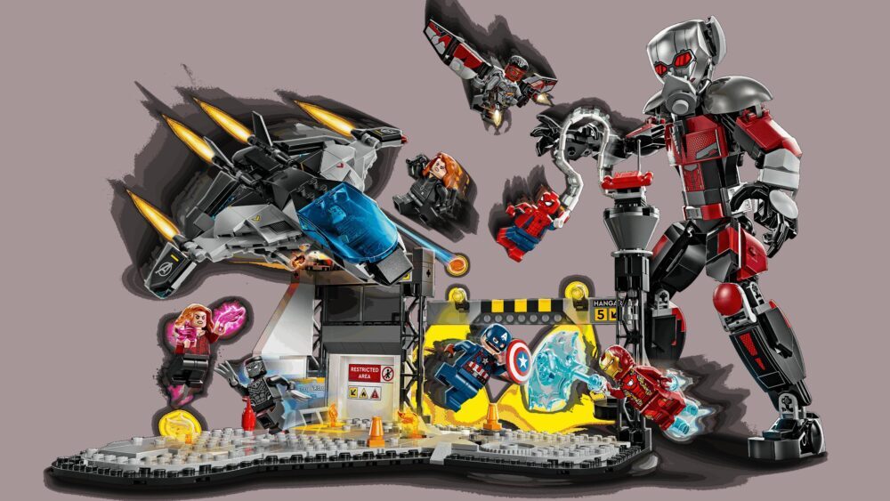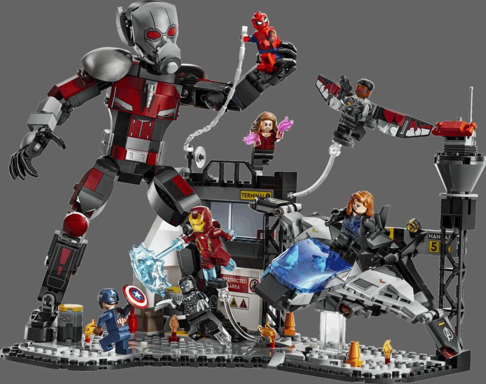 Doživi prizor borbe u zračnoj luci iz filma Kapetan Amerika: Građanski rat kuće Marvel Studios dok se jedan tim superjunaka, koji čine Iron Man, Spider-Man, Black Widow i Black Widow, obračunava s drugim timom superjunaka, u kojem su Captain America, Winter Soldier, Wanda, Falcon i Ant-Man. Ant-Man nadvio se nad zračnu luku, a Quinjet leti pored njega i sve je spremno za mega akciju!