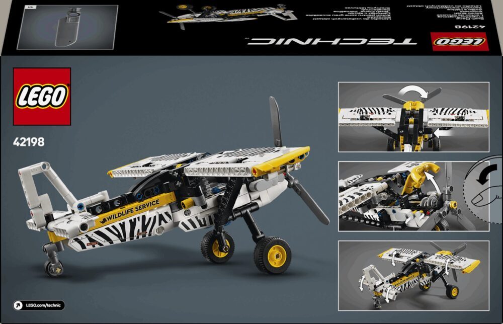 Mašta dobiva krila uz zabavni model zrakoplova za djecu od 8 godina i stariju. Dječaci i djevojčice uživat će u slaganju LEGO® Technic Propelerca za divljinu (42198), a poslije i u njegovim zanimljivim funkcijama. Pritisnite ručicu da se propeler počne okretati. Podesite krilca na bočnim krilima i stražnjem krilu. Zatim otvorite poklopac pa proučite 4-cilindarski motor s klipovima. Dječji model aviona ima zebrine pruge kao pravi propelerac za divljinu koji pomaže u očuvanju prirode. Kompleti vozila LEGO Technic imaju realistične pokrete koji uvode mlade LEGO graditelje u svijet mehanike. Ovo je izvrstan poklon ili nagrada za djecu koja vole modele aviona i LEGO vozila. Gledajte kako djeca razvijaju vještine slaganja dok se igraju propelercem za divljinu. Poklonite djeci jednostavnu i intuitivnu pustolovinu slaganja uz aplikaciju LEGO Builder u kojoj mogu približavati i okretati trodimenzionalne modele, spremati komplete i pratiti napredak.