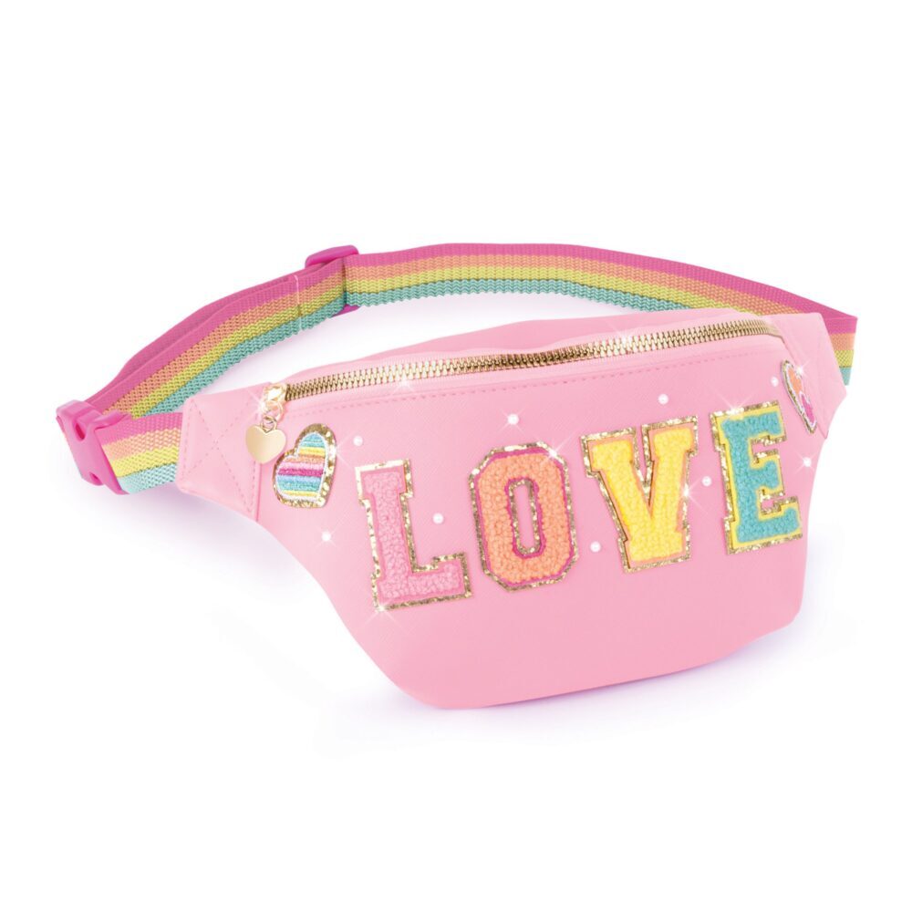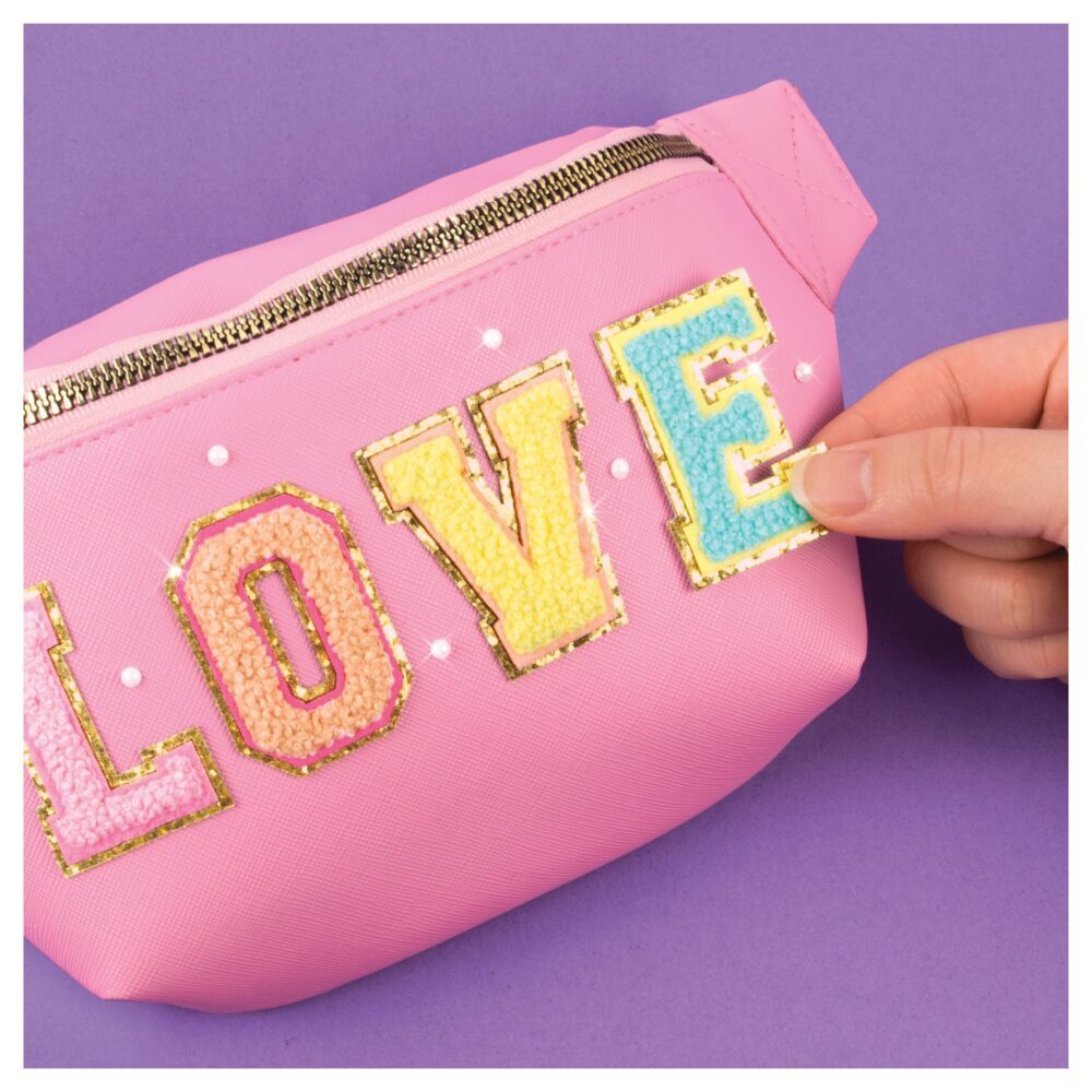 Vrlo moderna torbica oko struka – apsolutni hit s upečatljivim frotir zakrpama koje tvore riječ LOVE! Ukrasite ju biserima i oživite svoj svijet kreativnosti!
