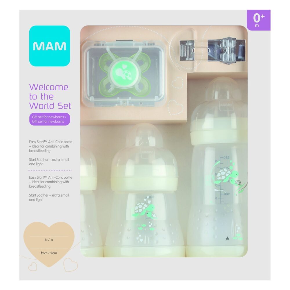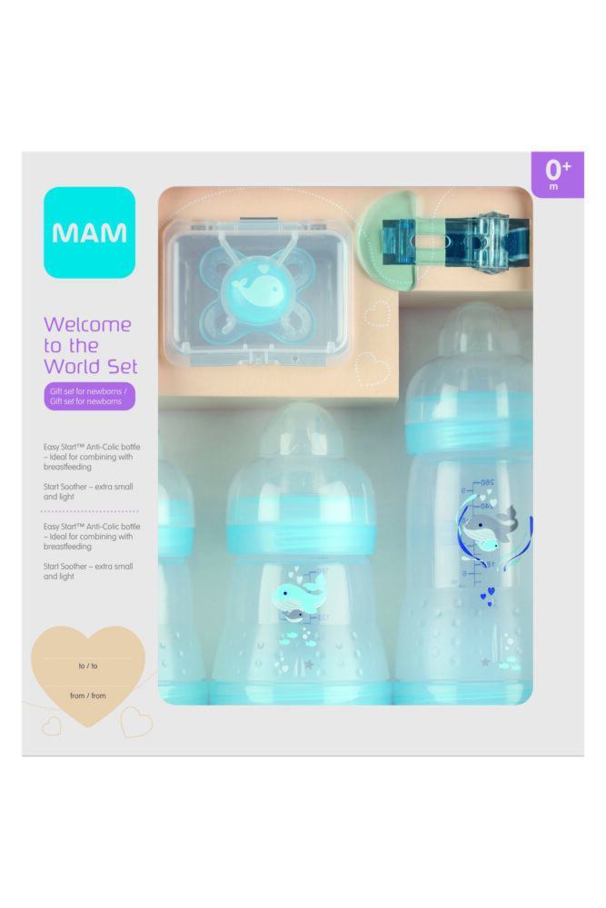 MAM poklon set za novorođenčad sadrži dvije bočice Easy Start Anti-colic 160 ml, jednu bočicu Easy Start Anti-colic 260 ml i dudu Start i držač za dudu Clip it. Značajke: