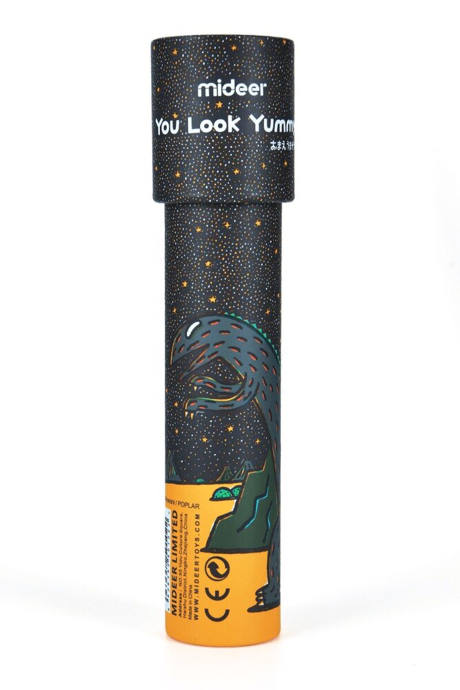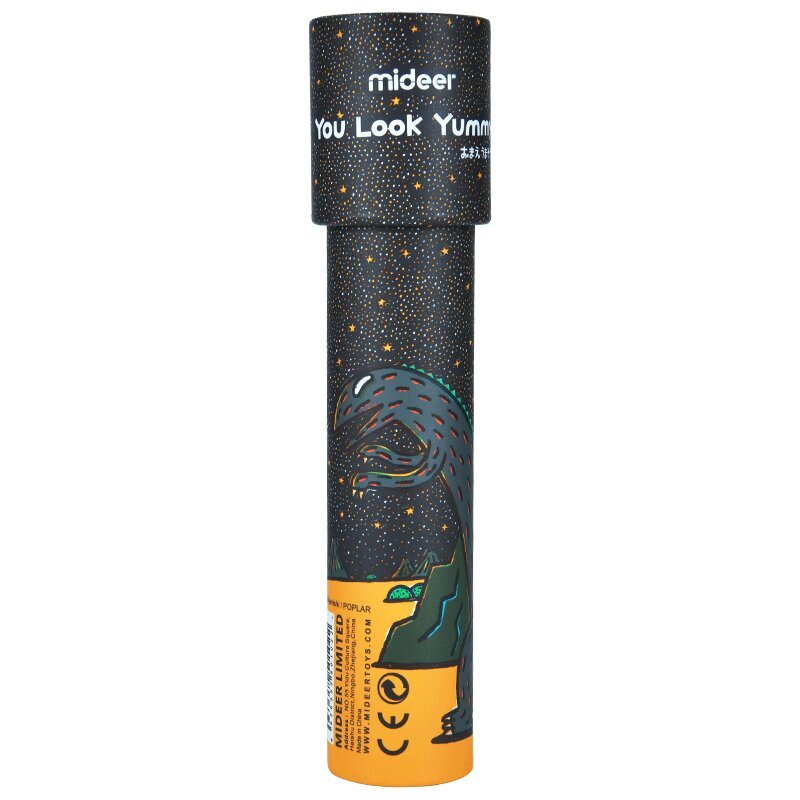 Mideer kaleidoskop pružit će djetetu čaroliju i prekrasne uzorke u vlastitoj sobi! Okrećite vrh cilindra i tako mijenjajte različite uzorke s temom hrane pod nazivom Ti izgledaš ukusno! Kompaktan, lagan, visok 19 cm i promjera 4 cm, kaleidoskop će s lakoćom držati u rukama čak i najmanje dijete te bez problema njime upravljati, stvarajući vlastiti čarobni svijet. Dob: 3+