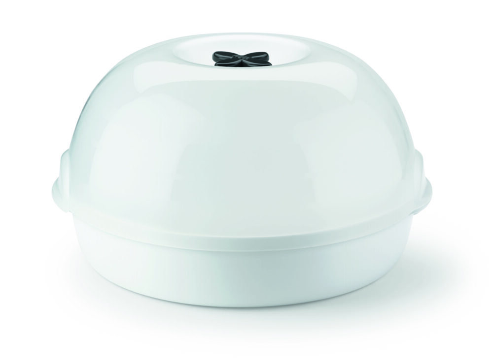 Sa svoje tri komponente, NUK Micro Express Plus jednostavan je za korištenje i odgovara svim standardnim mikrovalnim uređajima s minimalnom unutarnjom visinom od 187 mm i unutarnjom širinom/dubinom od 280 mm. Ima sustav zaključavanja i prozirni poklopac. Nakon procesa dezinfekcije, parni sterilizator NUK Micro Express Plus može se lako očistiti krpicom – ali se također može prati u perilici posuđa.