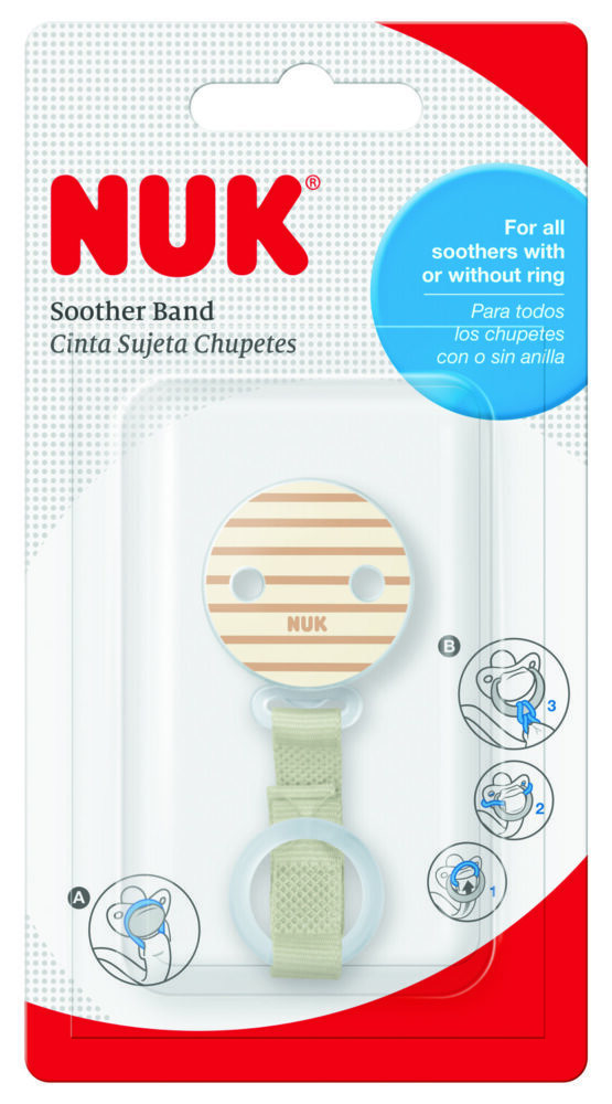 Zahvaljujući prstenu izrađenom od fleksibilnog silikona, NUK vezica za dudu može se sigurno pričvrstiti na dudu sa i bez prstena. NUK vezica za dudu ima tekstilnu traku i impresionira svojom dvostrukom funkcijom.