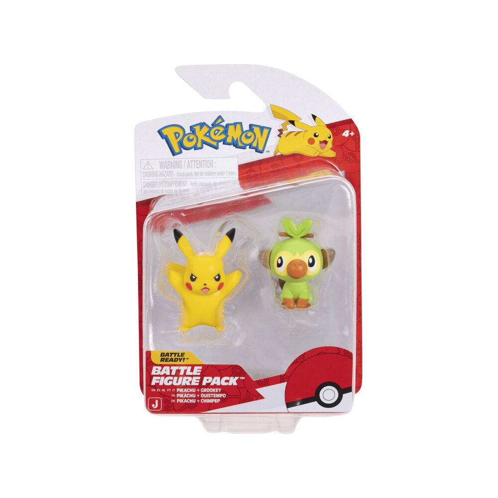 Dvostruko pakiranje Battle Figure figura sadrži likove dva popularna POkemona – Pikachu i Grookey – spremne za dvoboje i maštovitu igru! Figurice su izrađene s pažnjom prema detaljima te su idealne za male trenere koji žele proširiti svoju kolekciju. Sadržaj pakiranja: 2 Pokémon figure. Visina figure: oko 4 cm. Preporučena dob: 4+ godine.