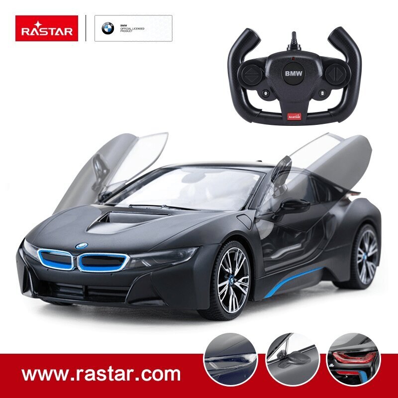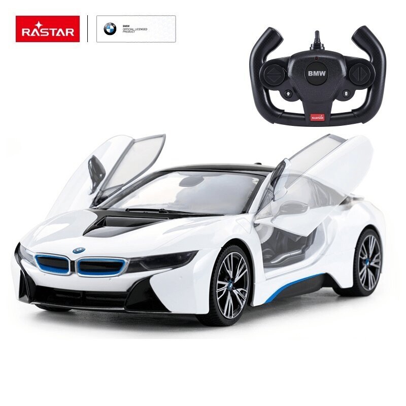 Rastar BMW i8 auto na daljinsko upravljanje izrađen je pod službenom BMW licencom, s vrhunskim detaljima koji vjerno dočaravaju pravi sportski automobil. Opremljen je funkcijama vožnje naprijed, nazad, lijevo i desno, uz prednja i stražnja svjetla koja pružaju realističan dojam vožnje. Vrata se otvaraju ručno, dok neovisni ovjes omogućuje glatku i stabilnu vožnju po različitim površinama. Dimenzije vozila: 33,5 x 15,9 x 9,3 cm. Boja: mat crna/bijela.Preporučena dob: 6+ godina. Baterije ne dolaze uz proizvod.