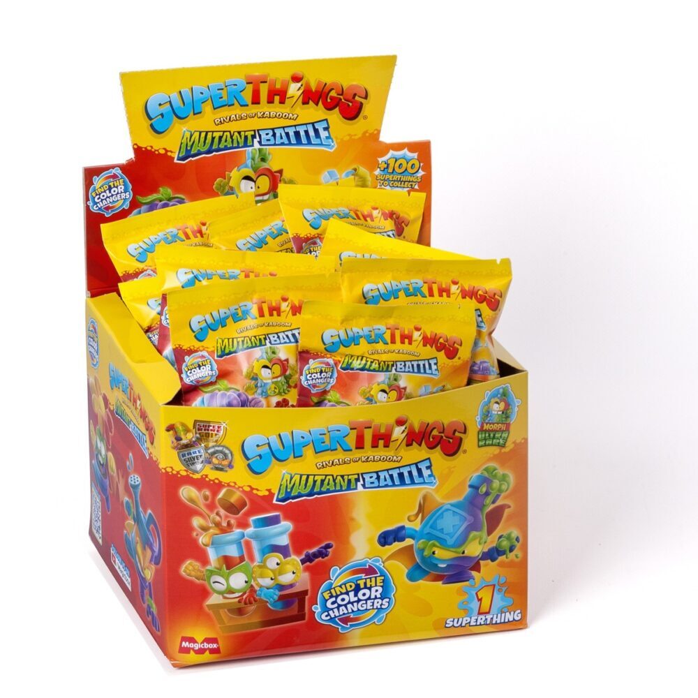 Otkrij novu seriju SuperThings Mutant Battle! Više od 100 novih likova za sakupljanje. Osim zlatnih i srebrnih kapetana, tu je i 6 figura te jedna ultra rijetka koja mijenja boju u dodiru s toplom ili hladnom vodom.