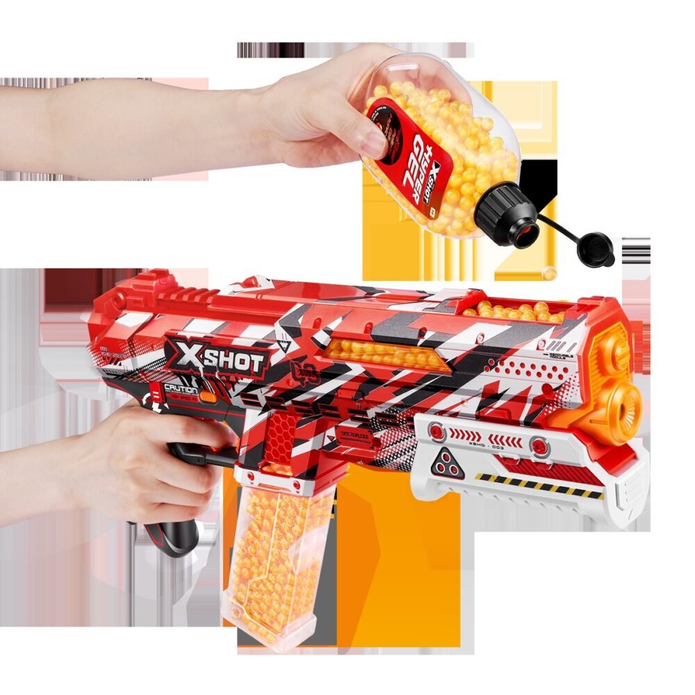 Vrijeme je za pravo uzbuđenje uz X-Shot Hyper Gel! X-Shot Hyper Gel Pištolj dolazi s praktičnim ručnim mehanizmom za punjenje i može izbaciti Hyper Gel kuglice do 30 m udaljenosti. Spremnik može primiti do 100 kuglica, a kad potrošite svoje gel kuglice, samo okrenite svoj pištolj kako biste ponovno napunili spremnik s čak 400 kuglica. S ovim setom dobivate 5000 Hyper Gel kuglica i zaštitne naočale. Samo dodajte vodu i spremni ste za najuzbudljiviju bitku s Gel Blasterom!