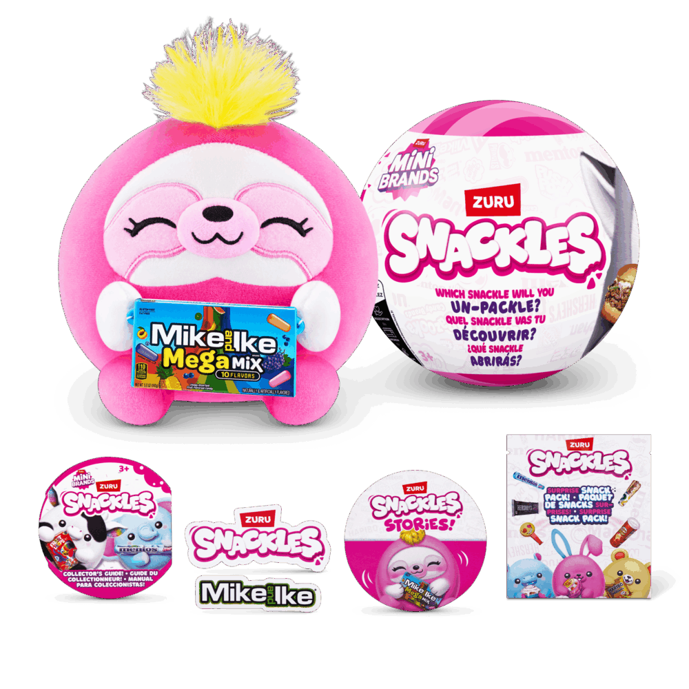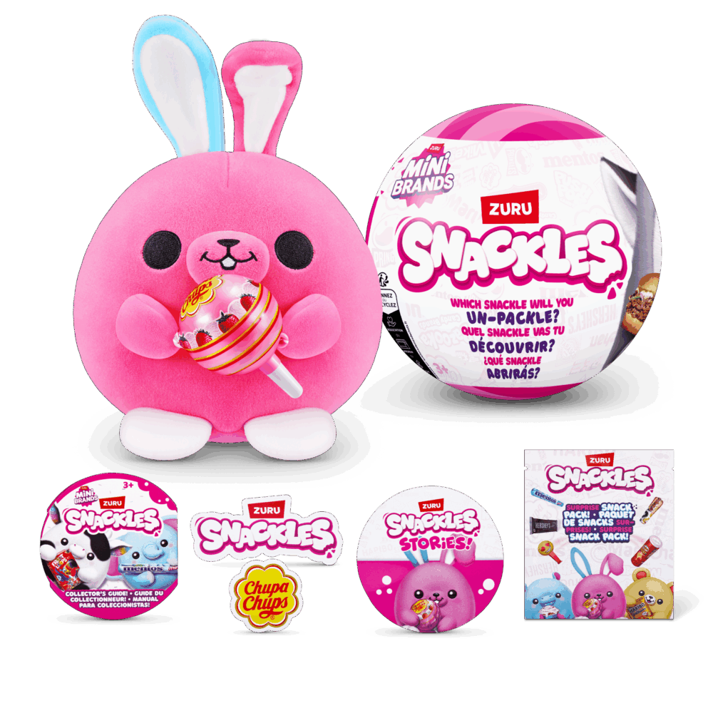 Snackles je super mekani pliš koji se može stisnuti i dolazi u kombinaciji s omiljenim proizvodima napravljenim od mekanih materijala!Raspakirajte svoj Snackle iz kapsule i gledajte kako raste! Svaki Snackle dolazi sa stripom o podrijetlu koji vam govori kako se vaš Snackle zaljubio u svoj snack.Nemojte biti gladni, imate 14 super Snackles koje možete skupiti!Hoćete li pronaći Haribo Bear ili Subway Huskyja? Benji, Loti ili Dani ? Potražite svoj omiljeni ukusni spoj sa Snacklesom!Dob 3+ god.