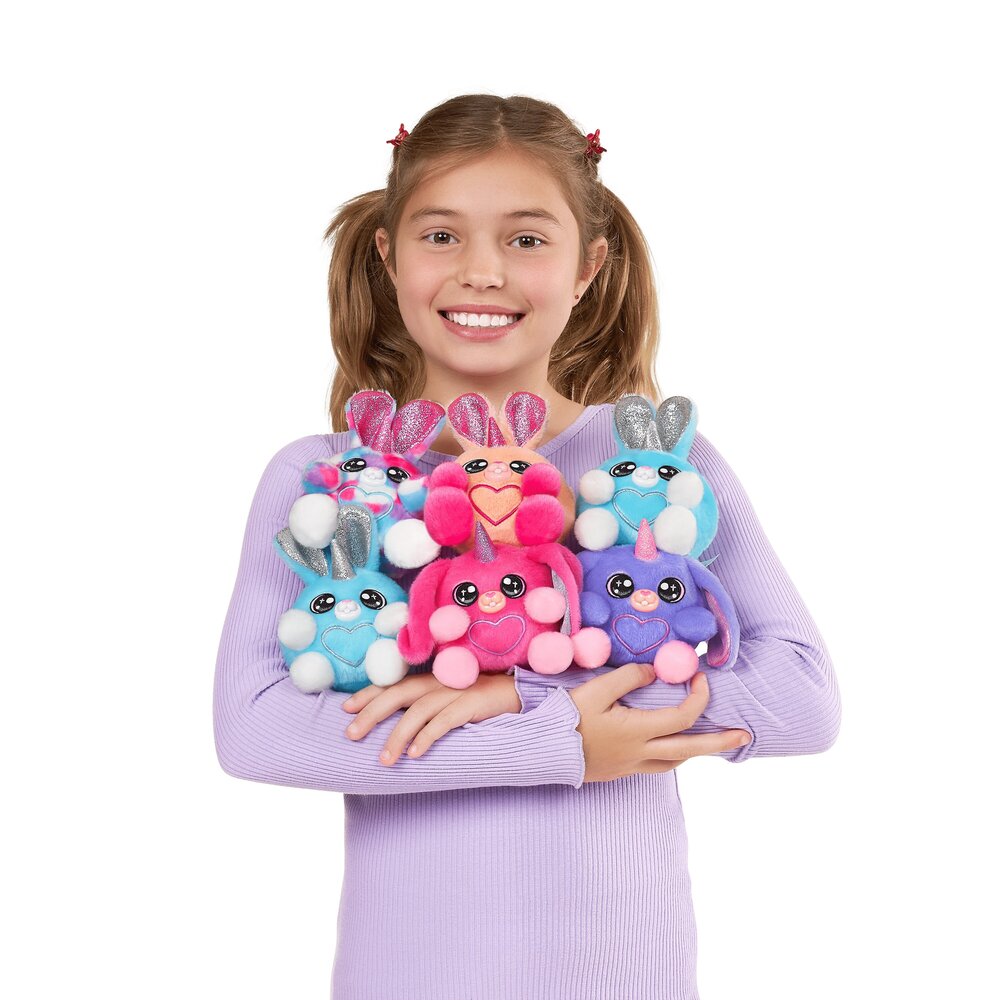 Rainbovilleom skakuću najslađi mališani zečjih ušiju koje si ikada srela! Novi Rainocorns Bunnycorns jaja iznenađenja skrivaju 6 plišanih zečića koja možeš sakupiti u jedinstvenu medenu zečju kolekciju. Svako jaje skriva 4 iznenađenja koja dolaze uz Bunnycornsa, uključujući slatki pamučni repić i naljepnice kojima možeš ukrašavti što god ti padne na pamet. Ovi medeni plišanci jedva čekaju doskakutati u tvoj zagrljaj! Dob 3+.